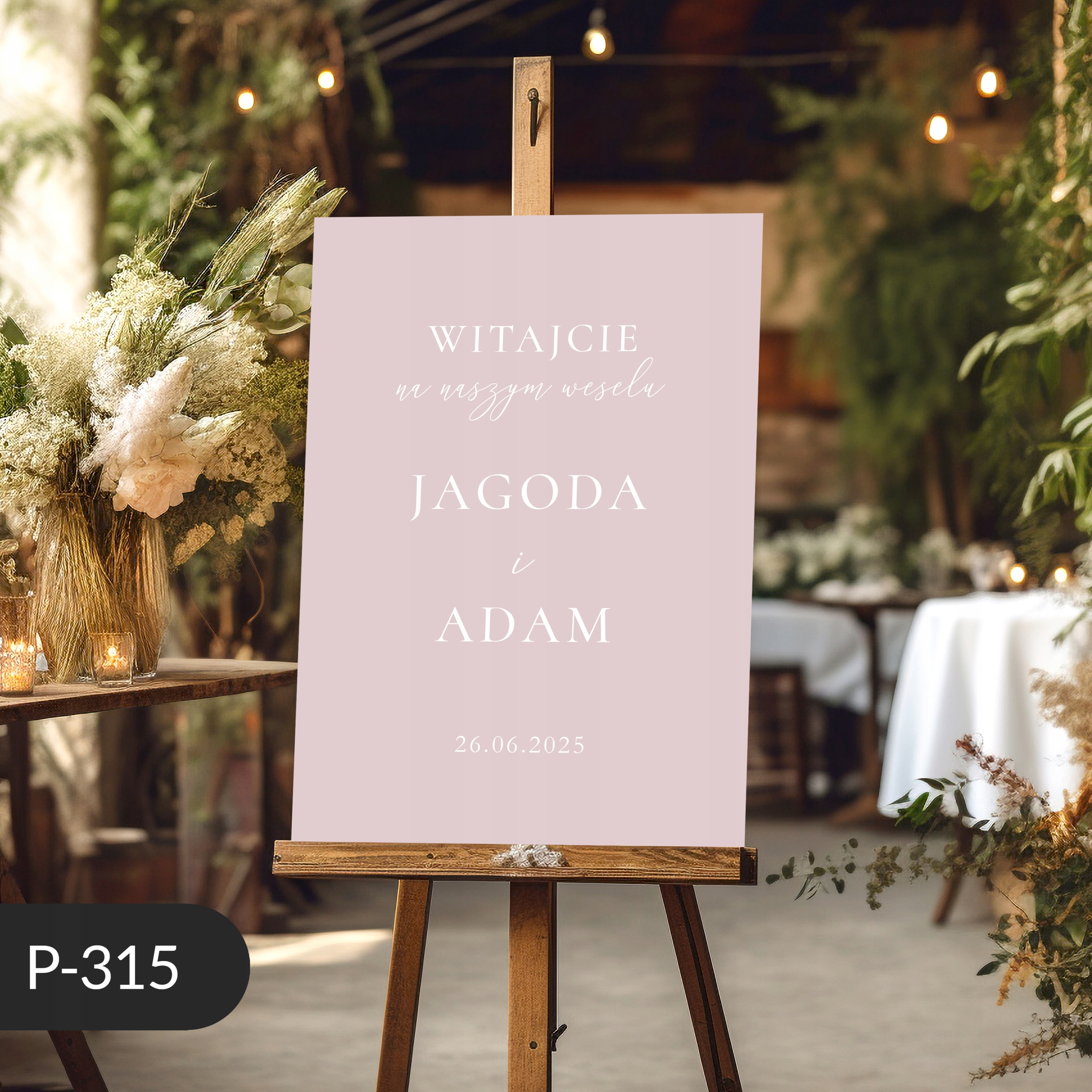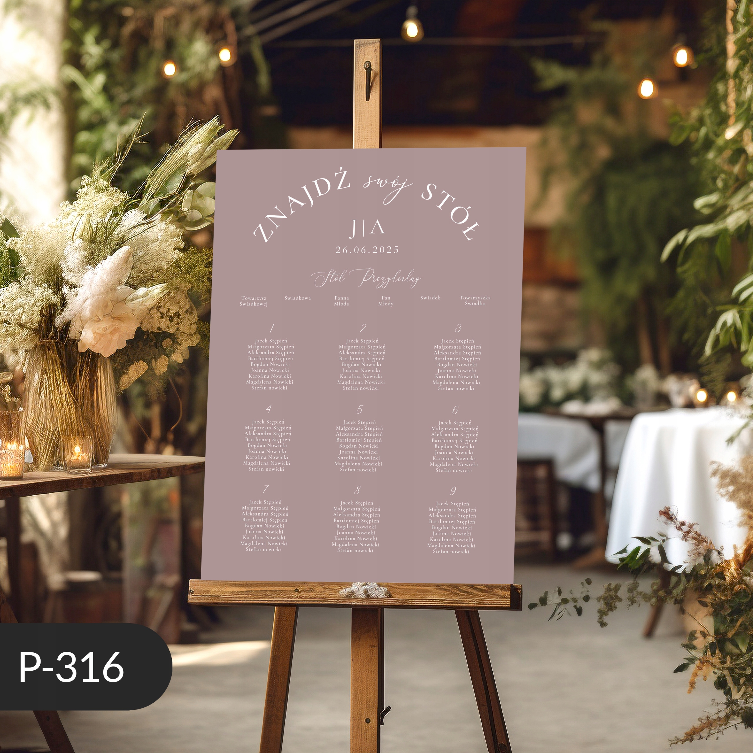 Ласкаво просимо плакат із написом "Ласкаво просимо на наше весілля" та плакат зі списком таблиць "Знайдіть свою таблицю", а також ваші імена та дата.
