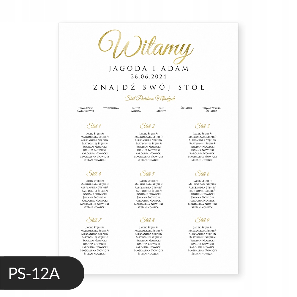 Весільний плакат із планом таблиці, золотим написом