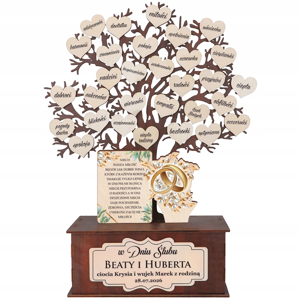 Подарунок дерев’яного дерева для весілля + власна посвячення