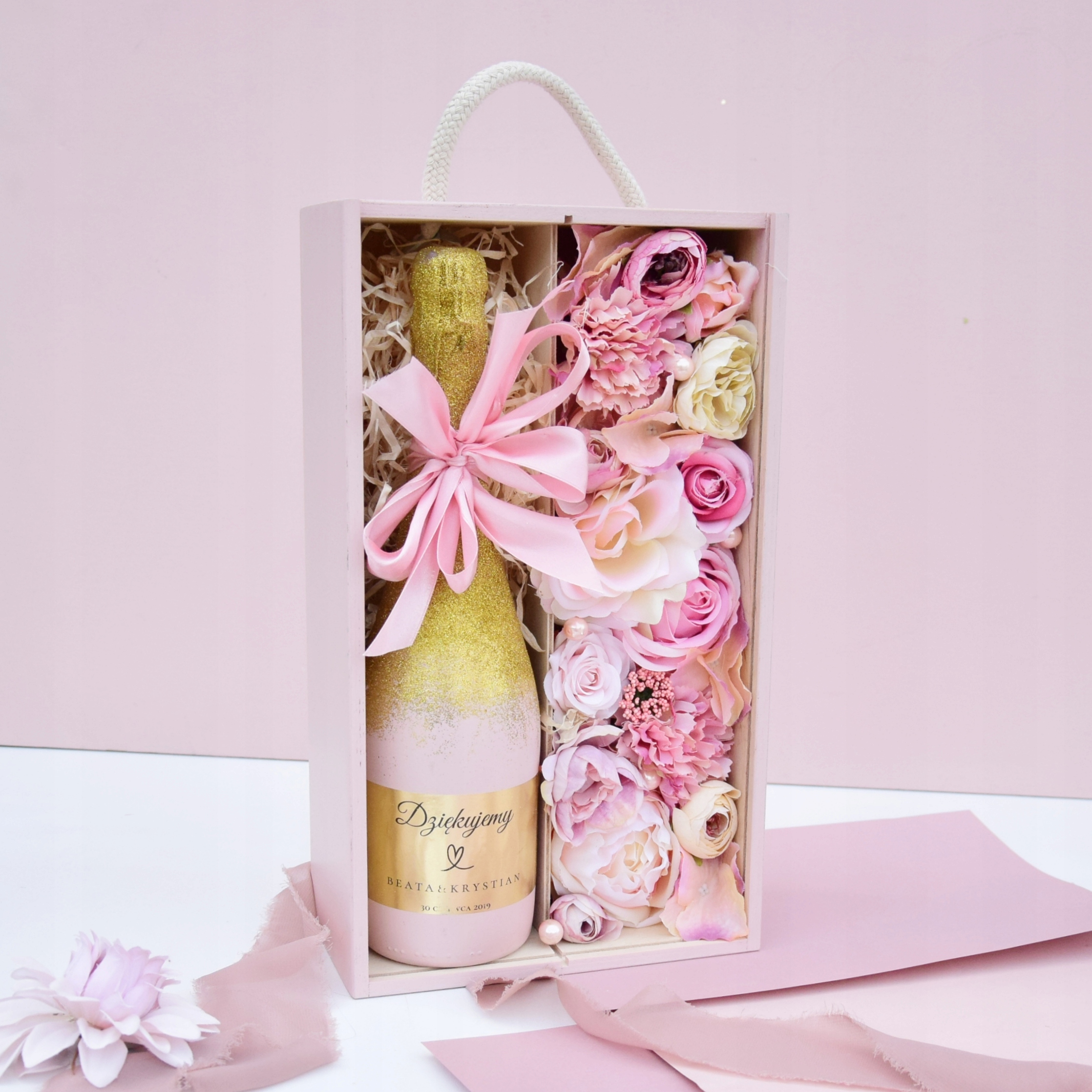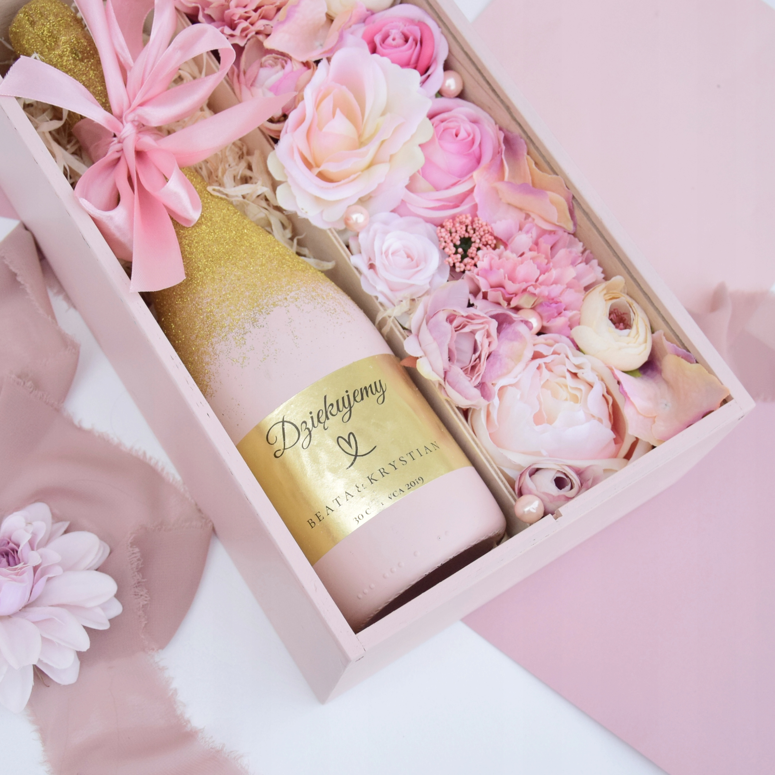 На аукціоні ми пропонуємо: Персональну коробку для алкоголю, наповнену квітами. Це буде чудовий подарунок для ваших батьків як подяка на весілля.