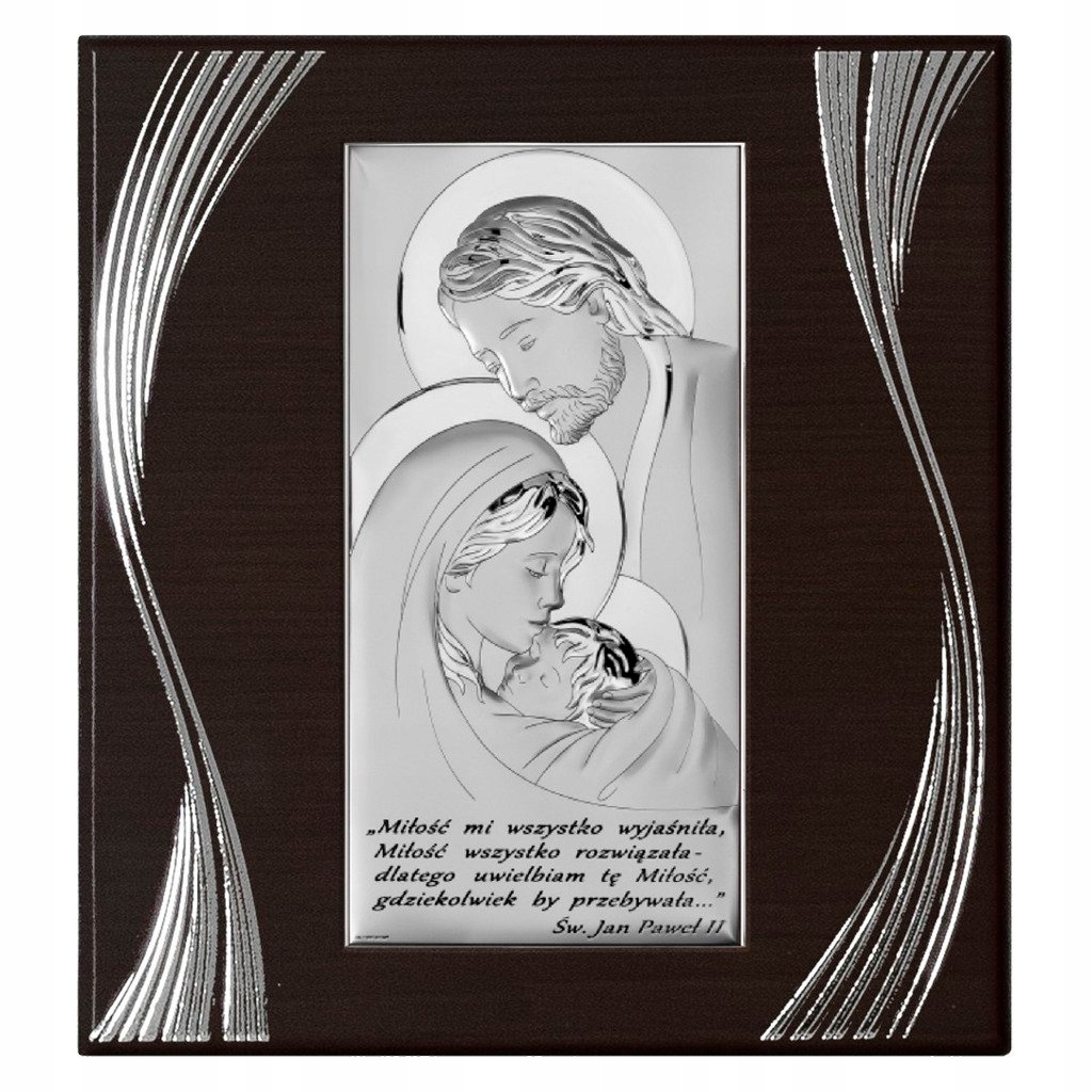 Срібна картина Святе Сімейство є зображенням єднання (причастя) Святих Осіб. Водночас цей образ виражає єдність, любов, життя подружньої пари та християнської сім’ї, яка прагне до святості та створення спільності у власному шлюбі та сім’ї, що робить його ідеальним подарунком на весілля чи народження дитини. дитина.