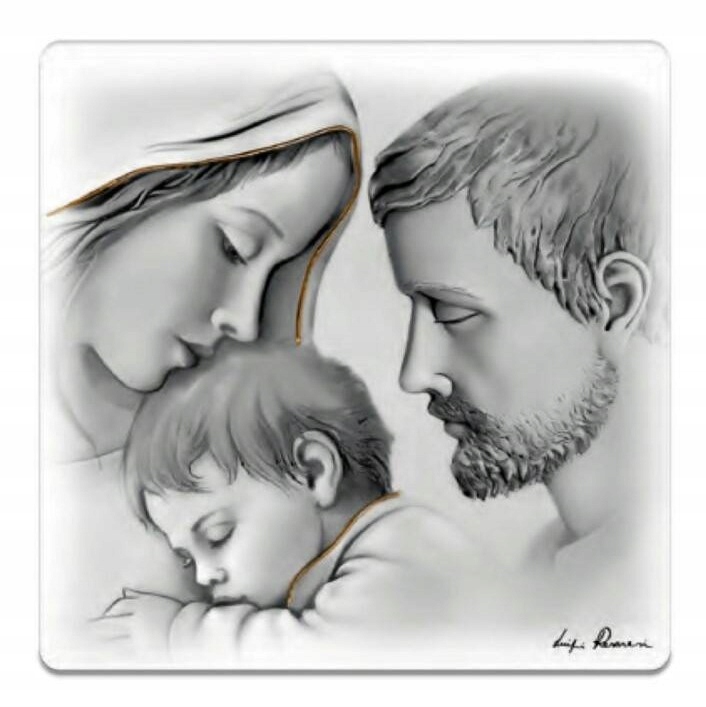 Картина, написана на дереві, оздоблена золотою фарбою ручного розпису, із зображенням Пресвятої родини.