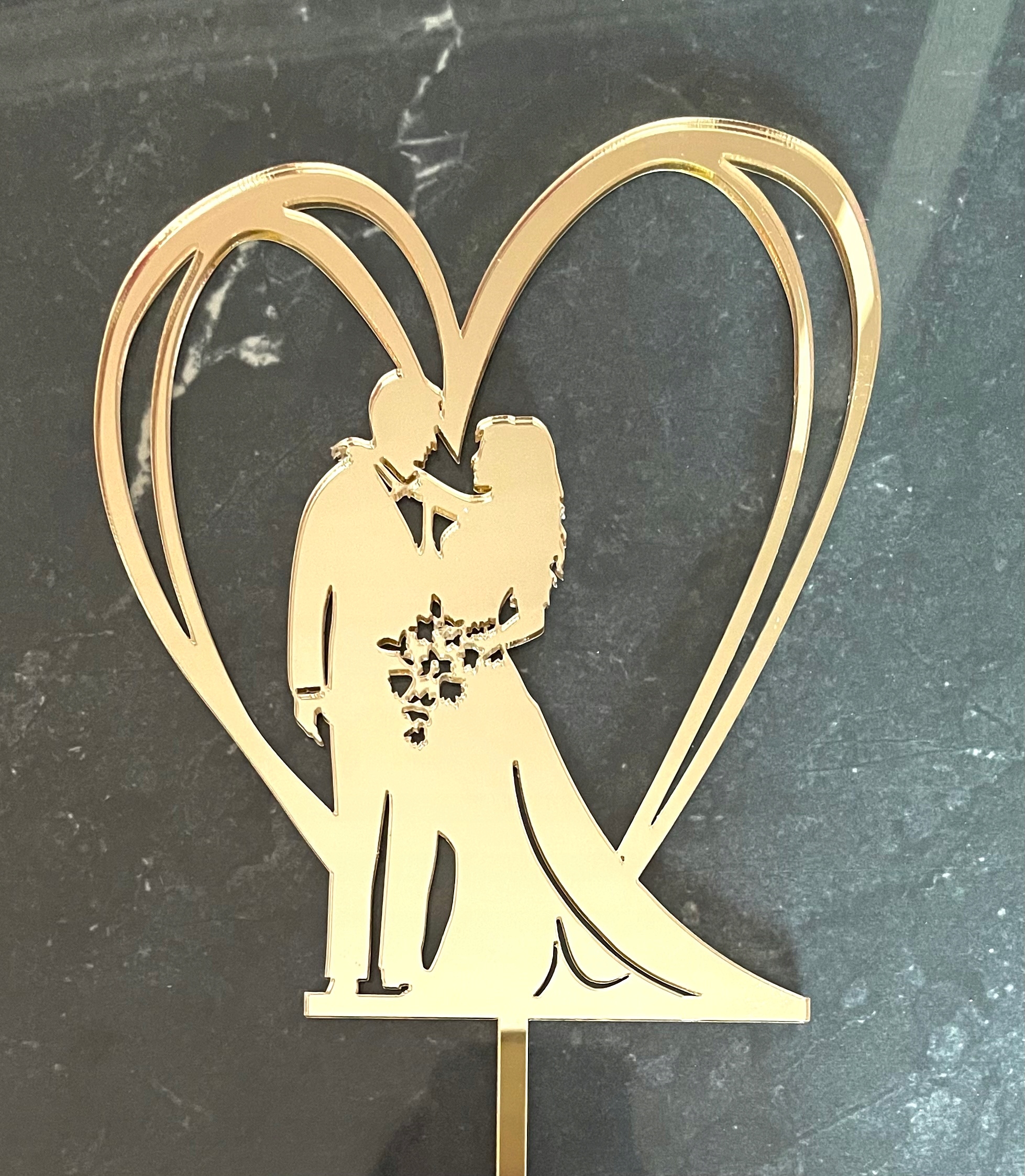 ВЕСІЛЬНИЙ ТОППЕР ДЛЯ ТОРТА СЕРДЕЦЕ золоте дзеркало