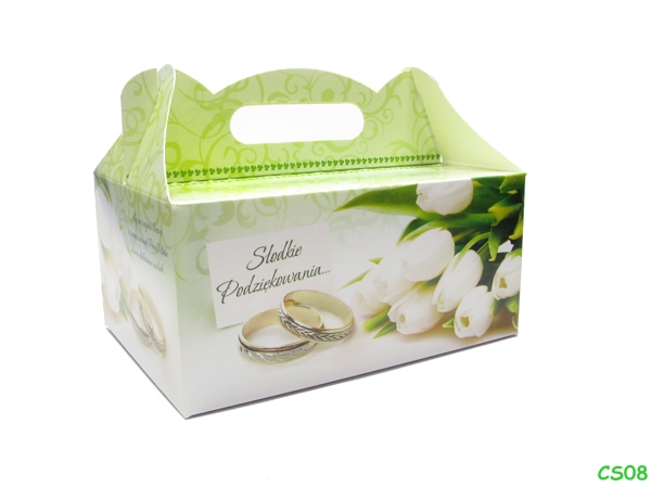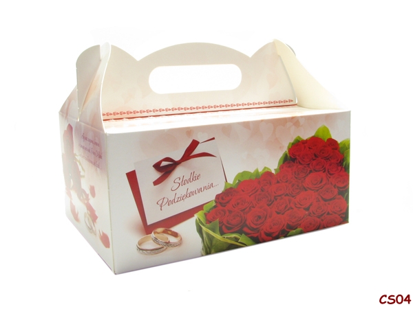 На коробках уже надруковано короткий текст подяки гостям: «Солодке спасибі. ..» або «Дякую» та додаткові весільні вірші (в залежності від моделі).