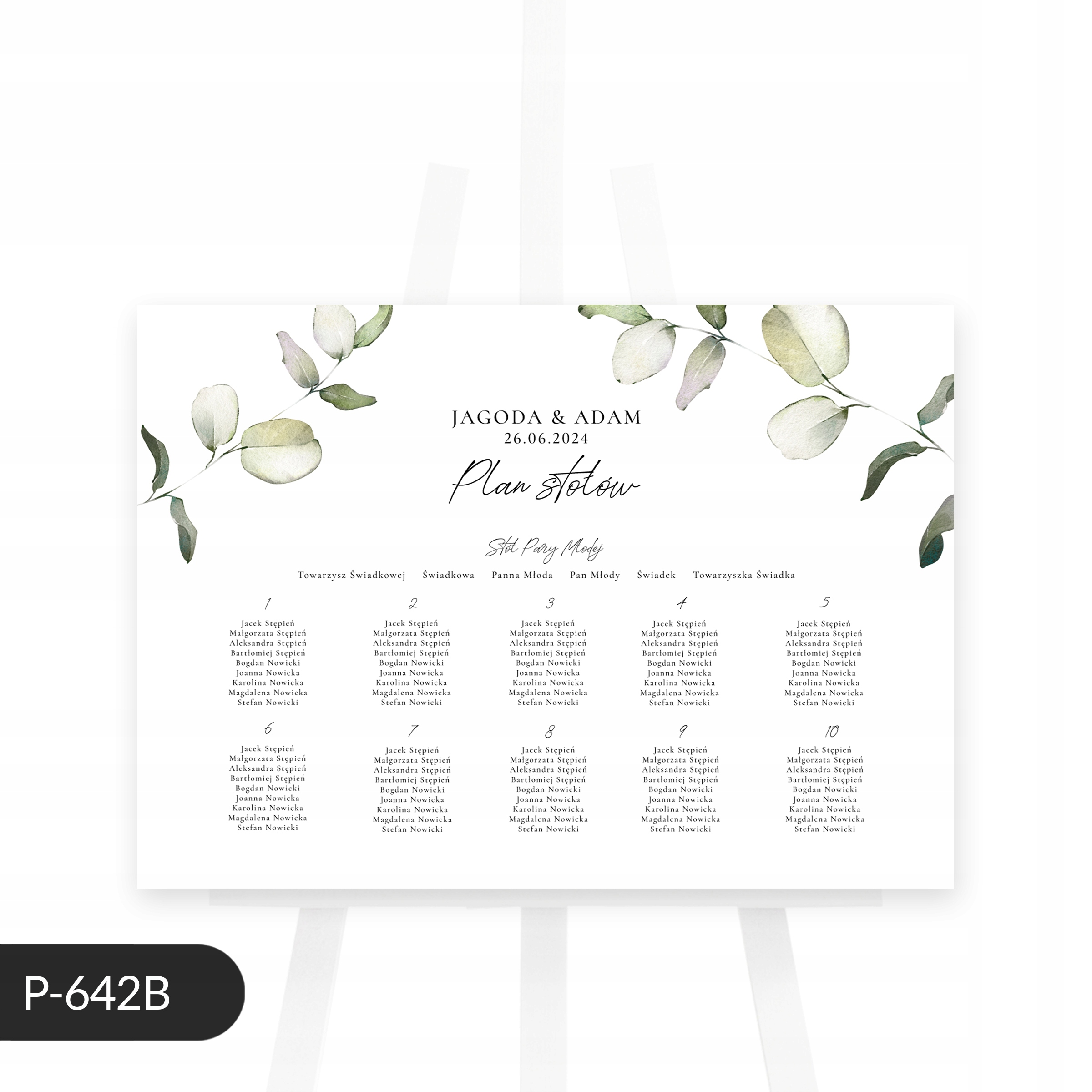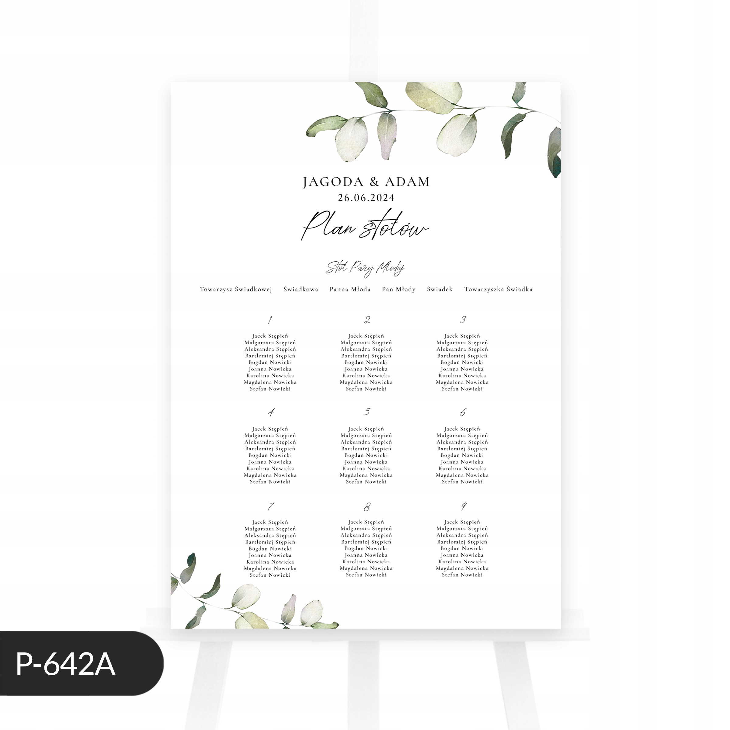 Весільний вітальний постер/план таблиці в стилі бохо, сільському стилі. Делікатна графіка листя евкаліпта.