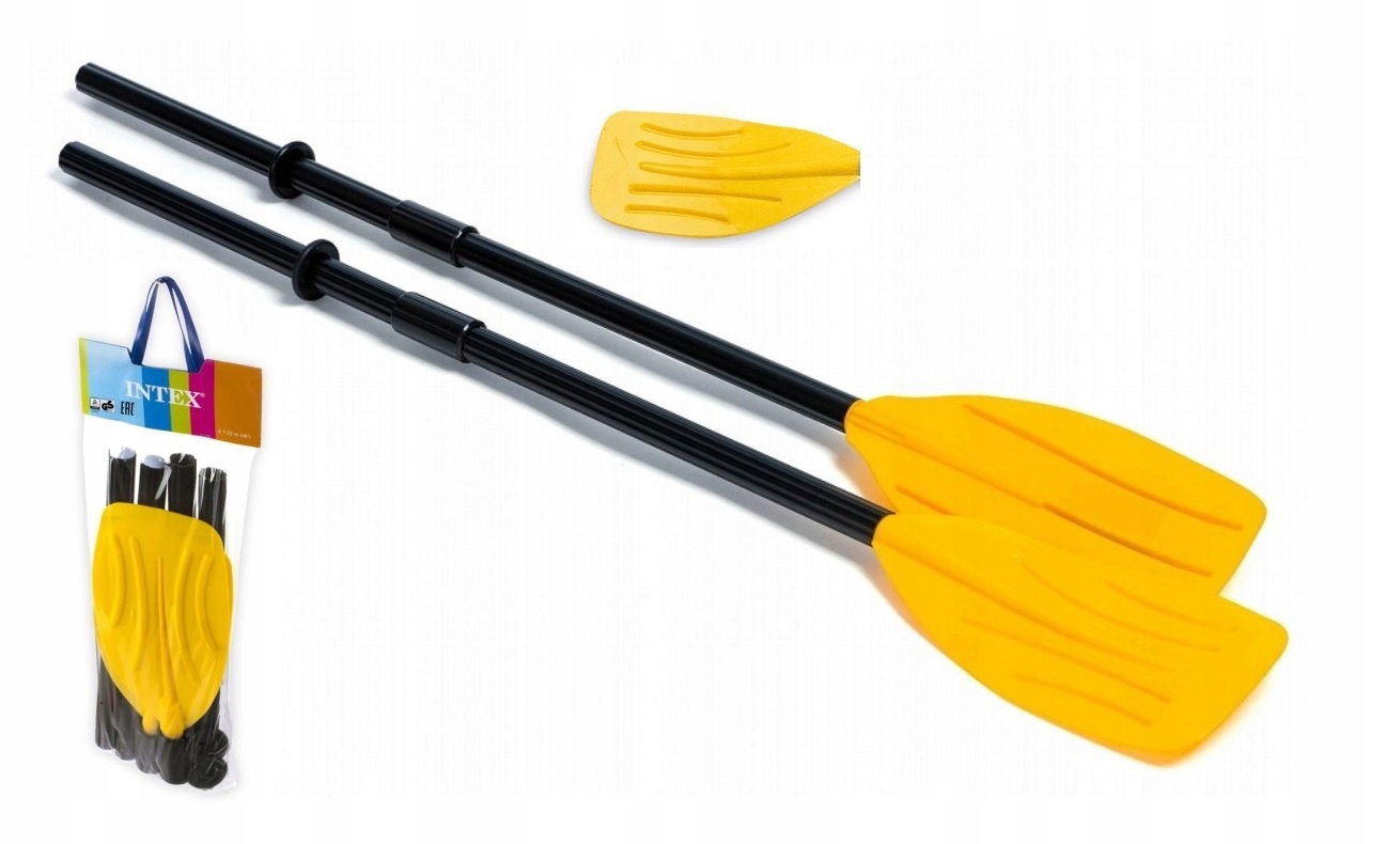 Весла складаються з кількох елементів, які з’єднуються за допомогою гвинтового з’єднання відповідних елементів. З двох весел можна зробити одне, пристосоване для плавання на менших каяках, його довжина 153 см.