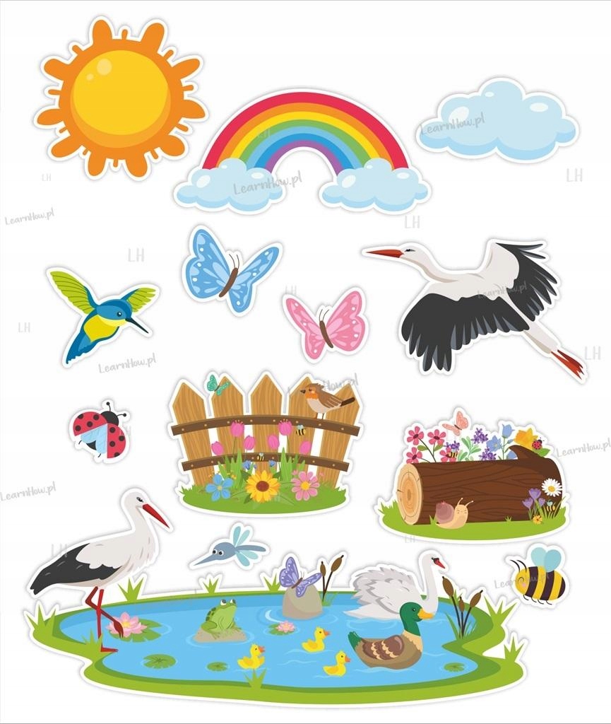 Пейзажний набір складається з 13 елементів - насичених весняними фарбами, квітами, природою та тваринами!