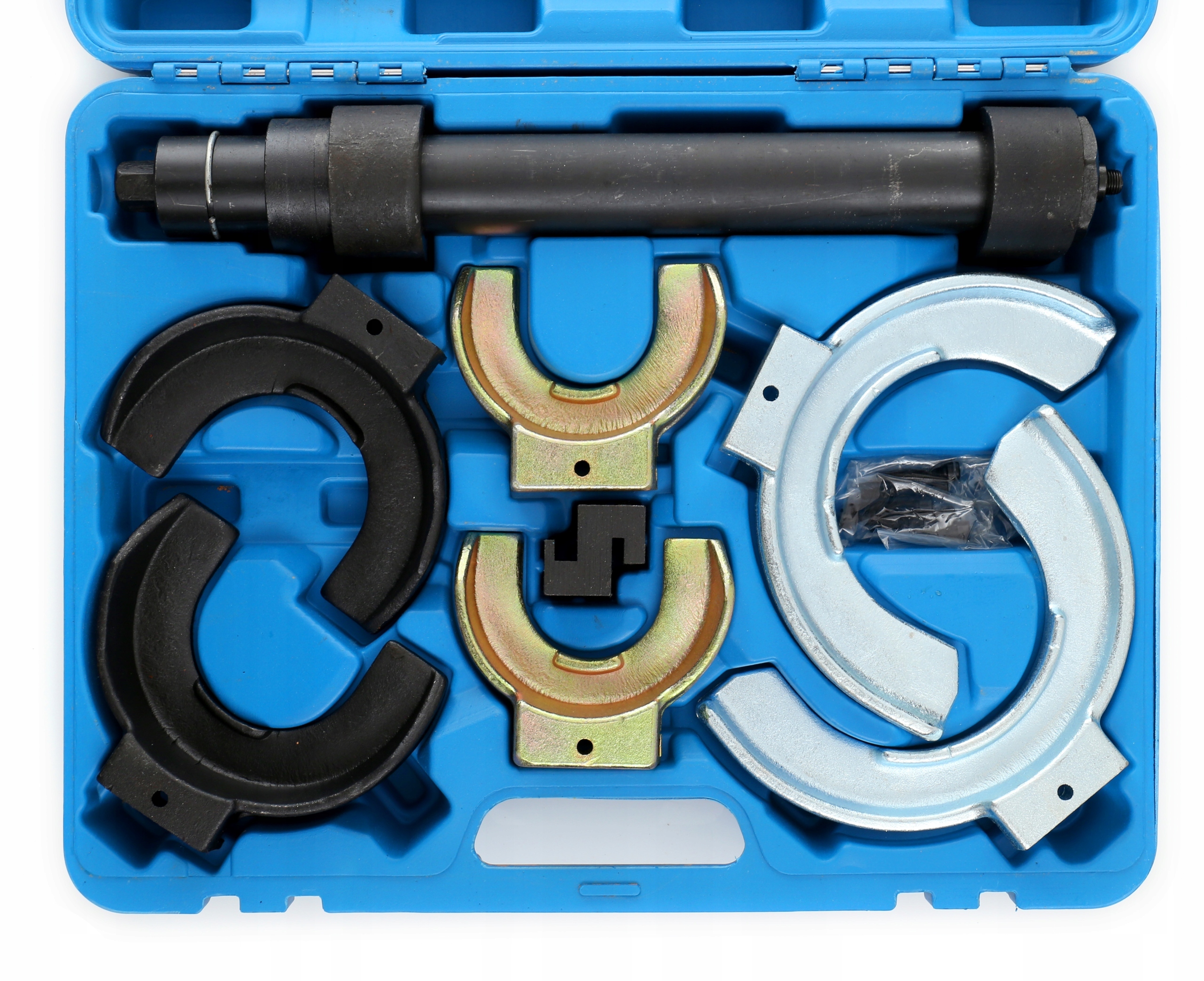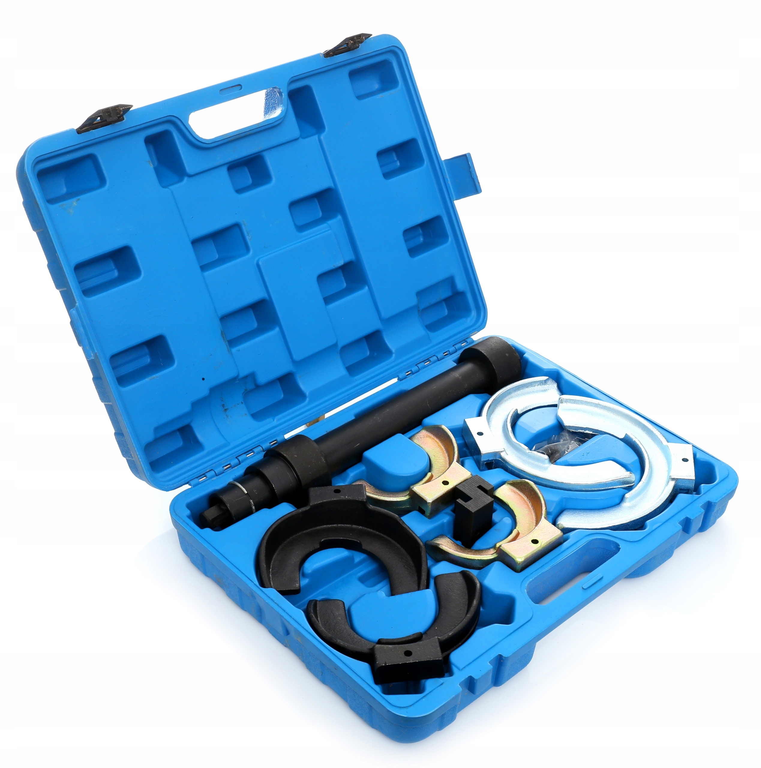 Професійний весняний завантаження на пасажирських автомобілях та фургоні. Наш набір оцінюється для універсальності, яку ви можете використовувати в BMW, Toyota, Mitsubishi, VW, Audi, Saab, Nissan, Honda, Subaru, Volvo, Opel, Porsche. Усі елементи терогового набору виготовлені з дуже міцної товстої сталі, яка витримує великі сили затискача. Перевага цього типу печерів - силою високої стиснення, що поширюється на велику поверхню, таким чином ми уникаємо пошкоджень пружин та небезпека порушення знятого