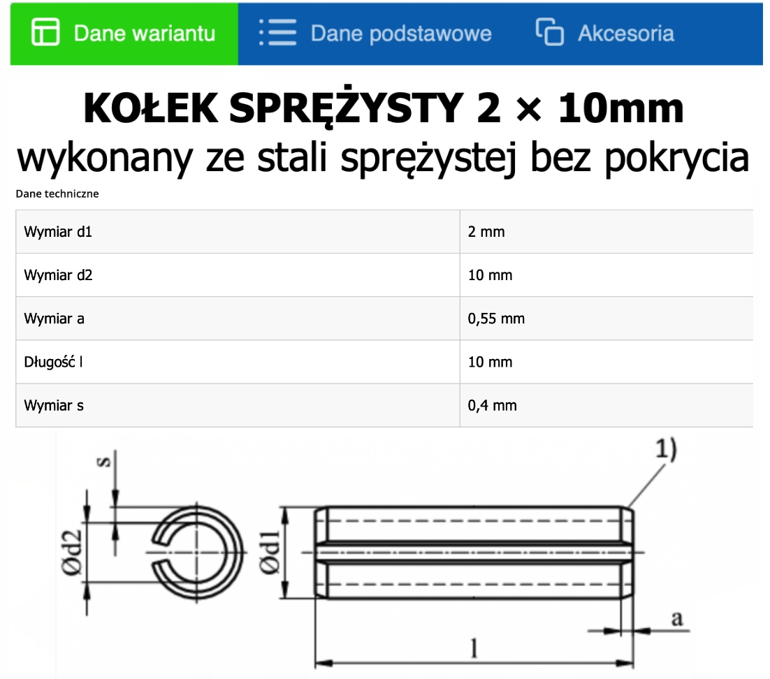Весняний Dowel din 1481 Продайте сталь 2x10 мм 100sztuk