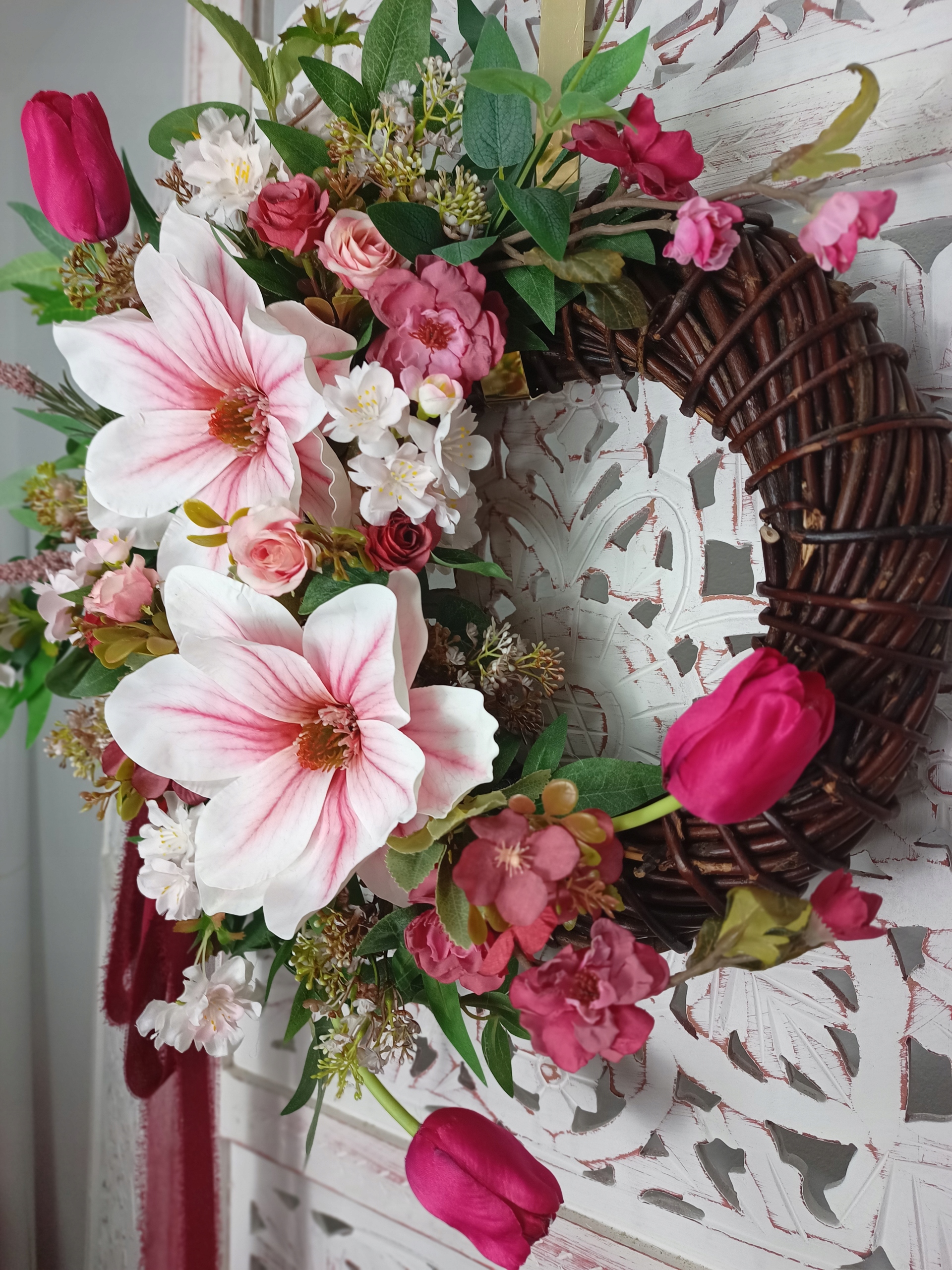 Весняний квітковий вінок на двері 40-48 см з магнолією