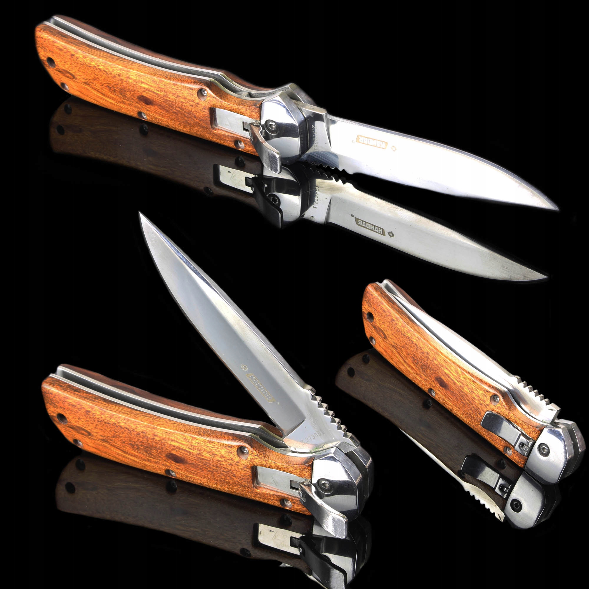 Суцільна міцна конструкція та сильна пружина, відкриваючи штаб -квартиру швидко і точно є загальними рисами весняних ножів.