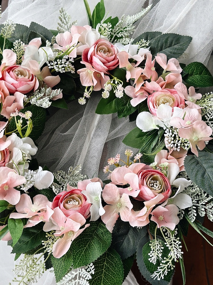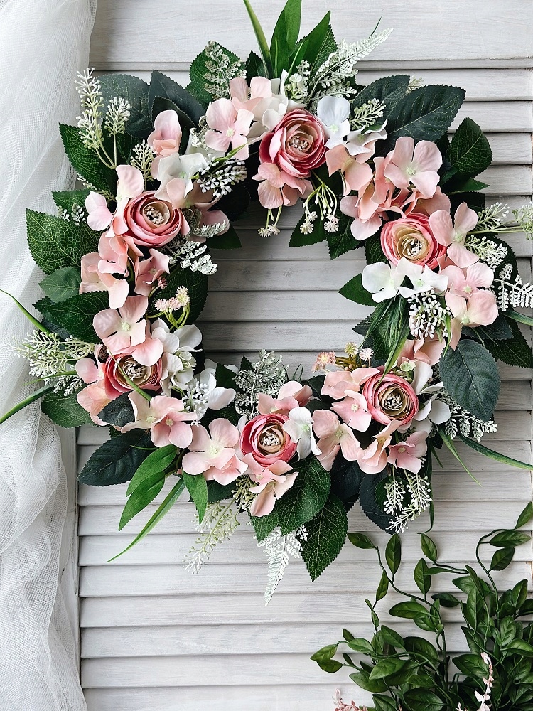 ВЕСНЯНИЙ ВІНОК НА ДВЕРІ, ПЛЕТЕНИЙ КРЕМОВИЙ, РОЖЕВИЙ