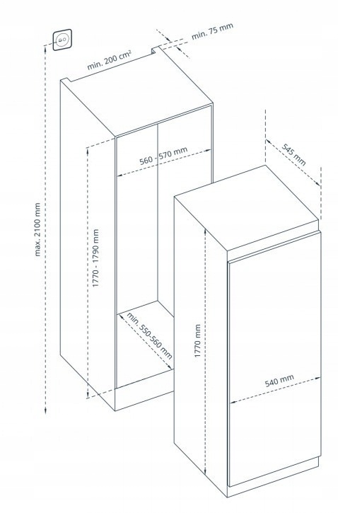 В набір входить холодильник VR-BF27952H1S і морозильна камера VR-BF27912H1S. Клас енергоспоживання: E. Автоматичне розморожування холодильників, морозильних камер No Frost.
