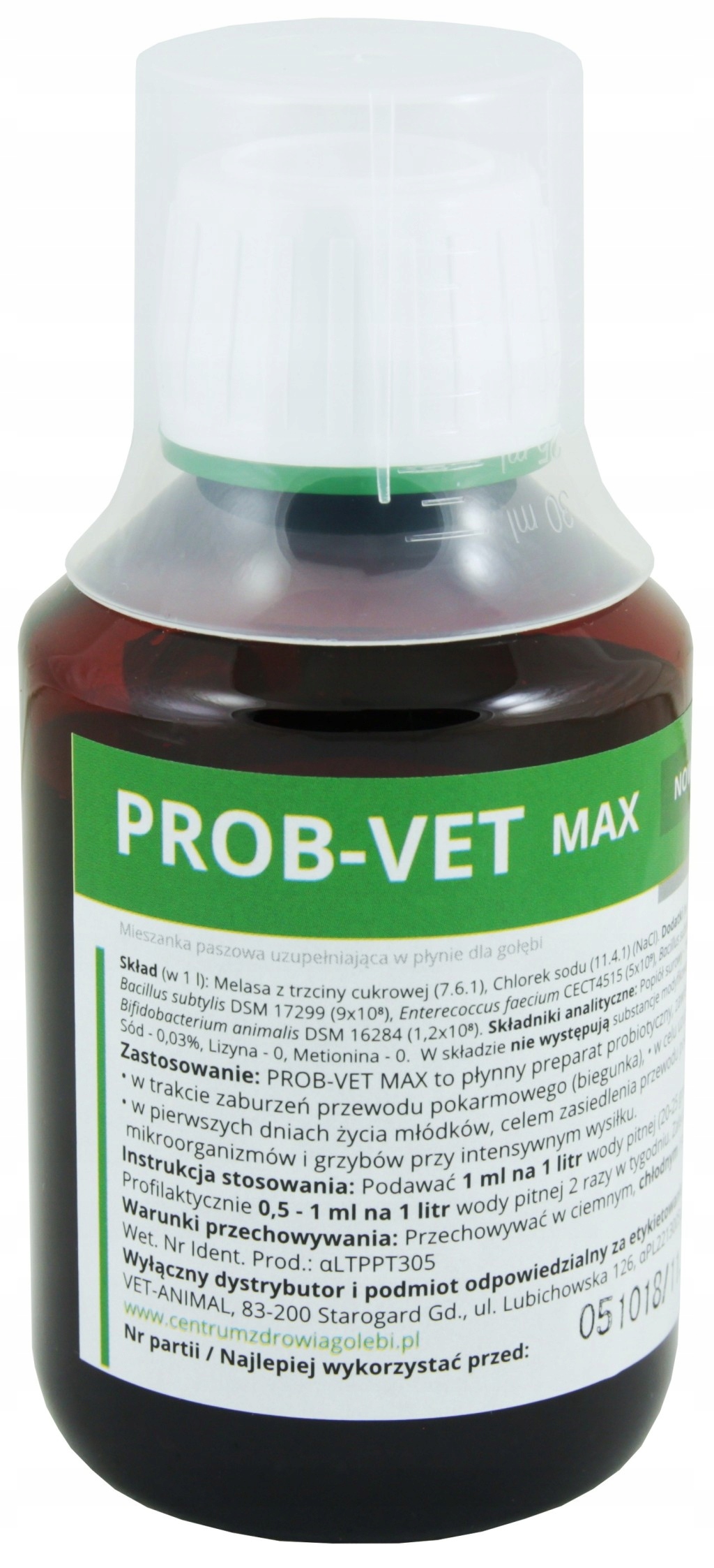 ПРОБ-ВЕТ МАКС можна використовувати як спрей навколо голубів (6 мл на 1 л теплої води в розпилювач/розпилювач). При введенні PROB-VET MAX воду слід підкислити одночасно для досягнення оптимальних результатів.