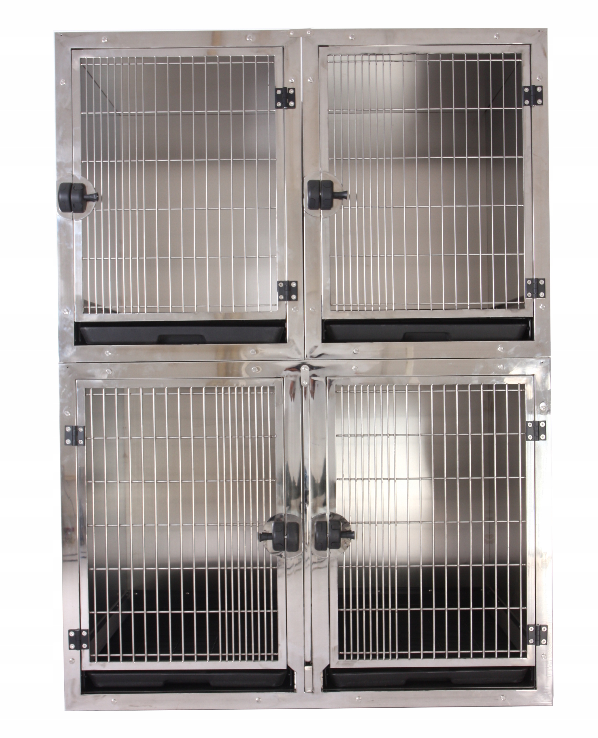 Професійні ветеринарні клітки для тварин, необхідні у ветеринарній клініці . Клітки виготовлені з нержавіючої сталі.