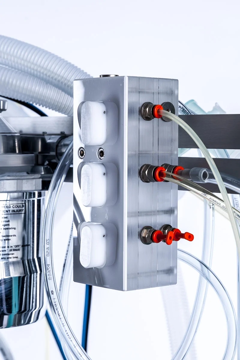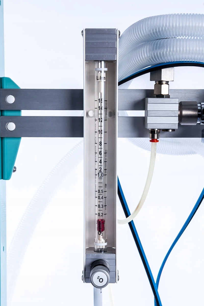 - Потік O2, який зчитується скляним витратоміром
