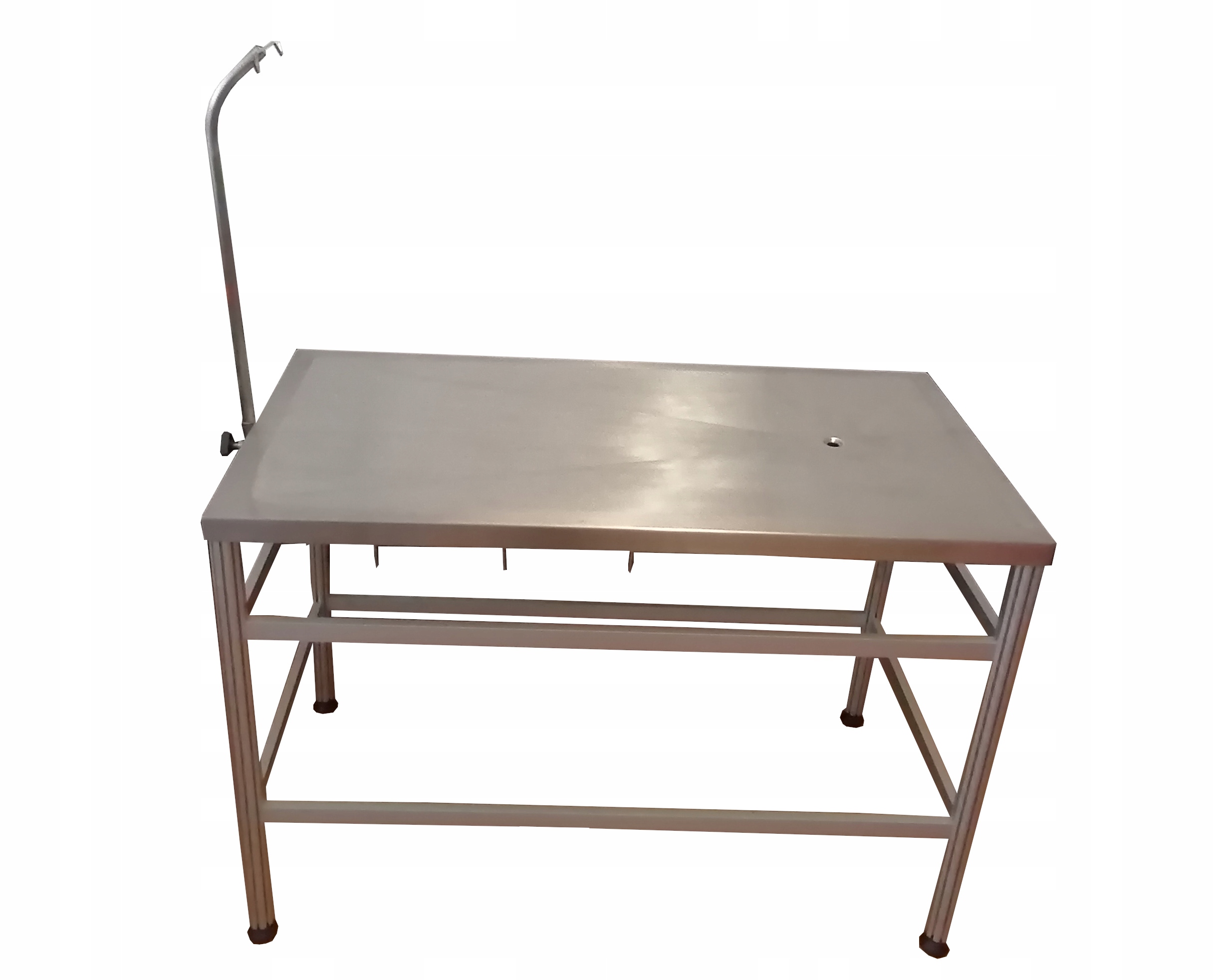 Пропонований нами операційний та лікувальний стіл дуже часто використовується ветеринарами у своїх кабінетах. Для зручності роботи лікаря наш стіл оснащений профільованою стільницею з встановленим дренажем, підставкою для інфузійних рідин і гачками з боків стільниці.