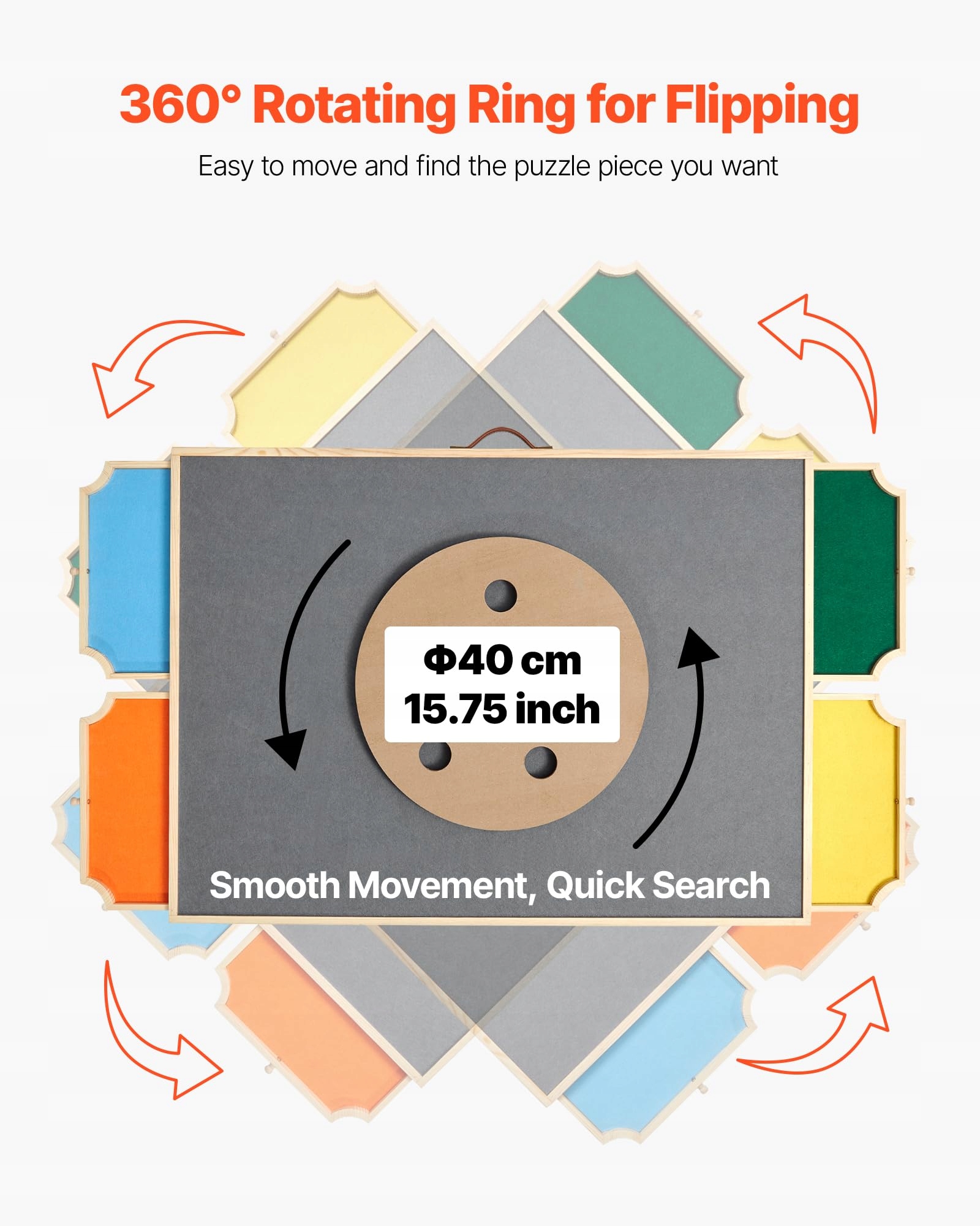 360 ° обертове базове кільце: Ця портативна стільниця головоломки дозволяє гладким 360 ° обертанням. Лише кілька секунд ви можете без особливих зусиль обертати стіл до розробленого положення. Це забезпечує зручний і цікавий спосіб грати в головоломки