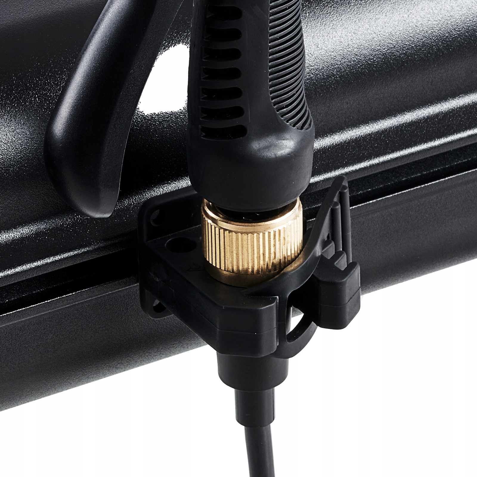 Універсальні варіанти насадок: оснащений душовою головкою та розпилювачами, цей резервуар для води в багажнику. Очисник для даху можна під’єднати до 4-метрового телескопічного шланга для очищення великих поверхонь на великих відстанях. Включає подовжувач змішувача з регульованим кутом нахилу для освіжаючого душу на відкритому повітрі після активності.