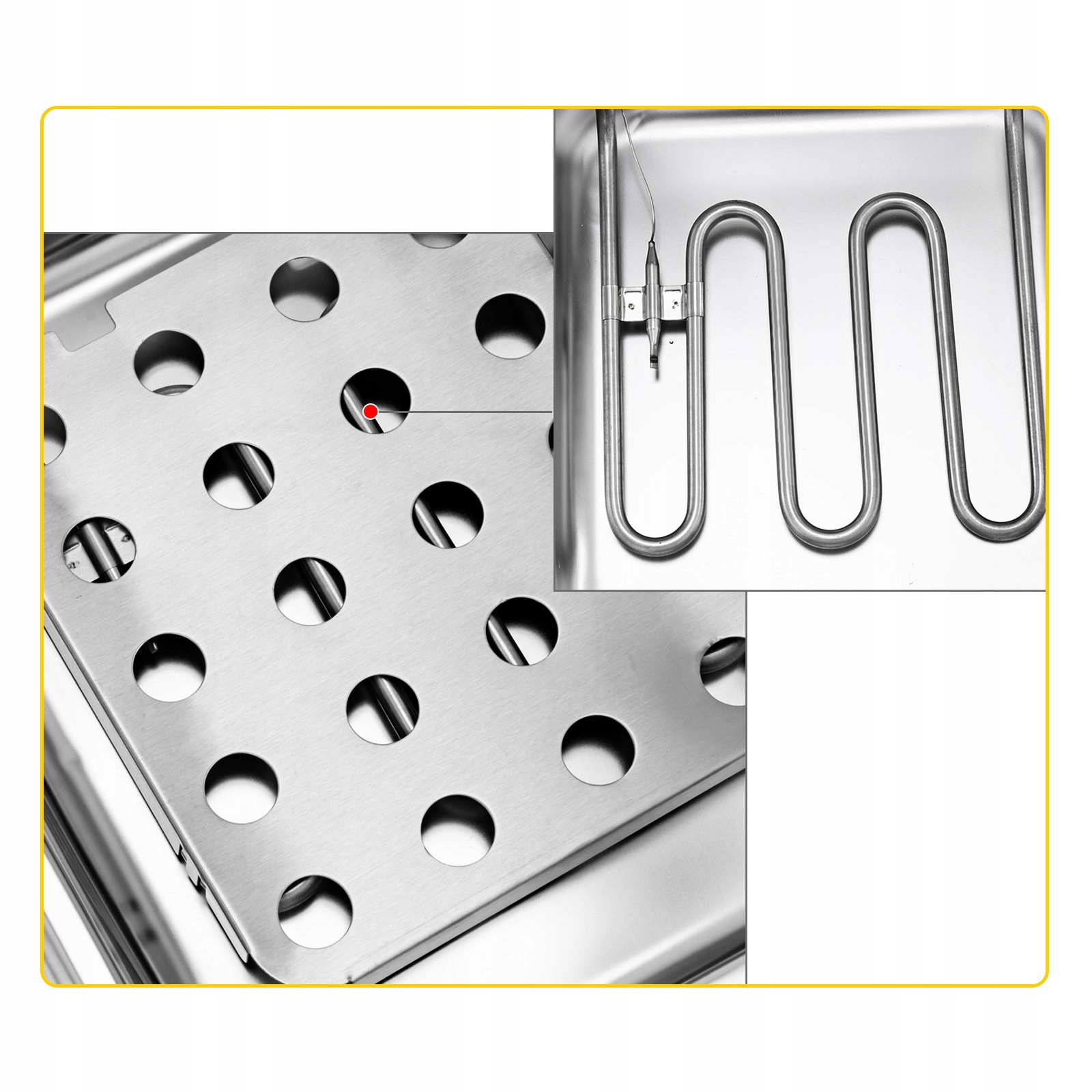 【ШВИДКЕ НАГРІВАННЯ】 - Покращена 5-кільцева нагрівальна трубка для більш рівномірного та швидшого нагрівання порівняно з 3-кільцевими трубками. Перегородки запобігають прямому контакту між кошиком і трубою опалення та обмежують прилипання залишків їжі. Кришки в комплекті з ручкою для швидкого нагрівання та захисту.