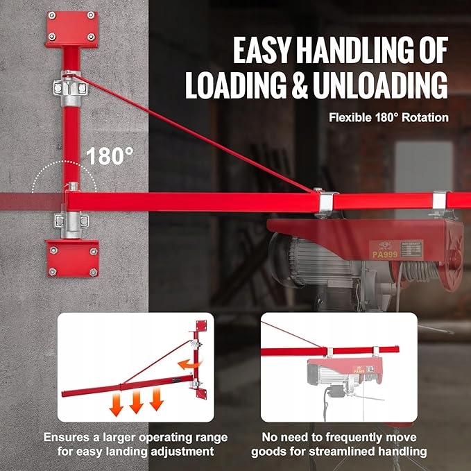 Електричний підйомник HST-750 ARM 180 ° навантаження 300 кг червоного кольору.