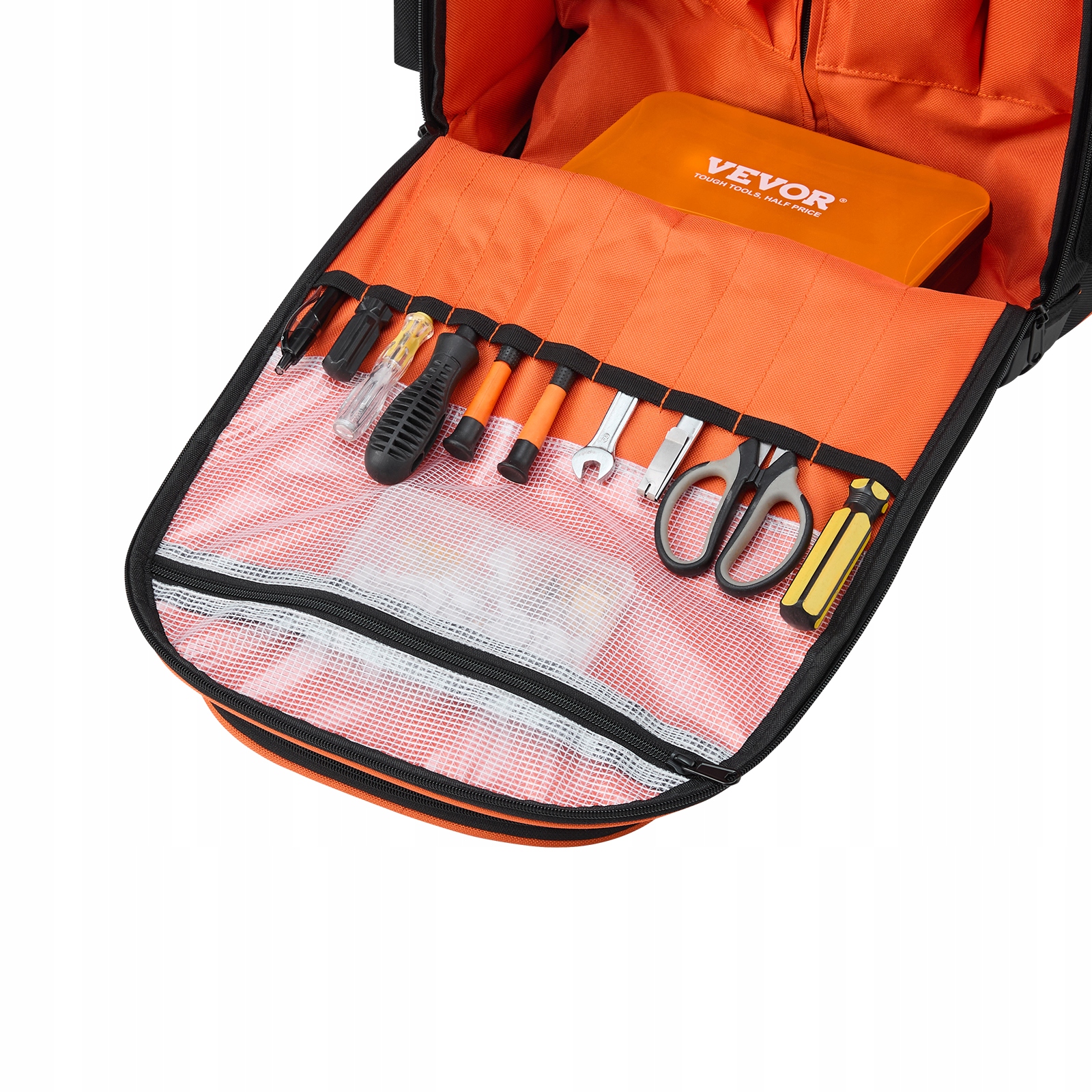 Величезний простір для зберігання з 45 кишенями: цей рюкзак для інструментів 2-в-1 із коліщатками ідеально підходить для будь-якої ситуації з двома просторими відділеннями та 45 кишенями для зберігання всіх інструментів. Завдяки помаранчевій підкладці ви швидко знайдете те, що вам потрібно – більше не потрібно шукати.