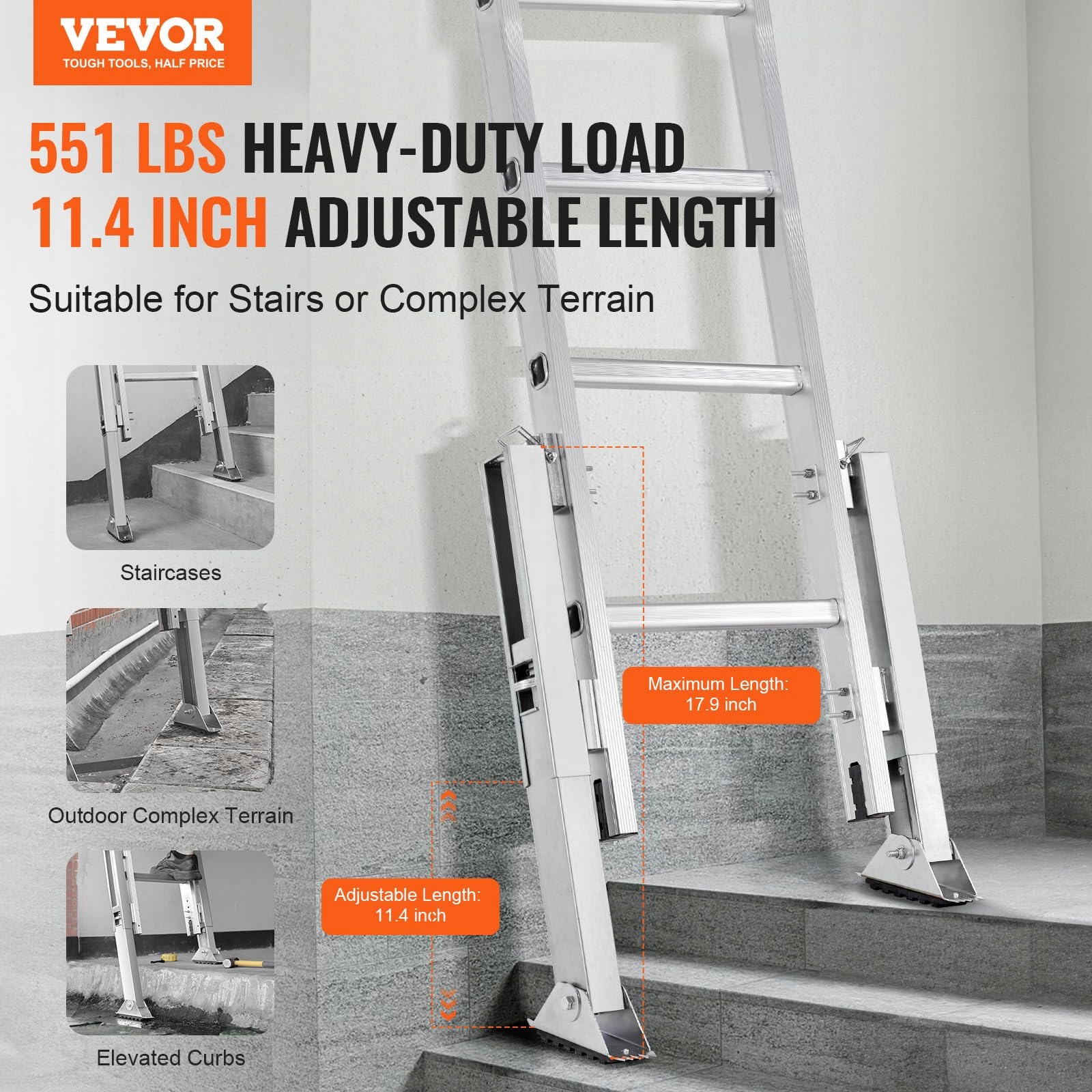 VEVOR Ladder Levler, інструмент для вирівнювання сталевої драбини з розширенням довжиною 11,4 дюйма, швидкоз’ємний бункер для кроку, стабілізатор сходів, простий у використанні, аксесуари для подовжувальної драбини для нерівної землі