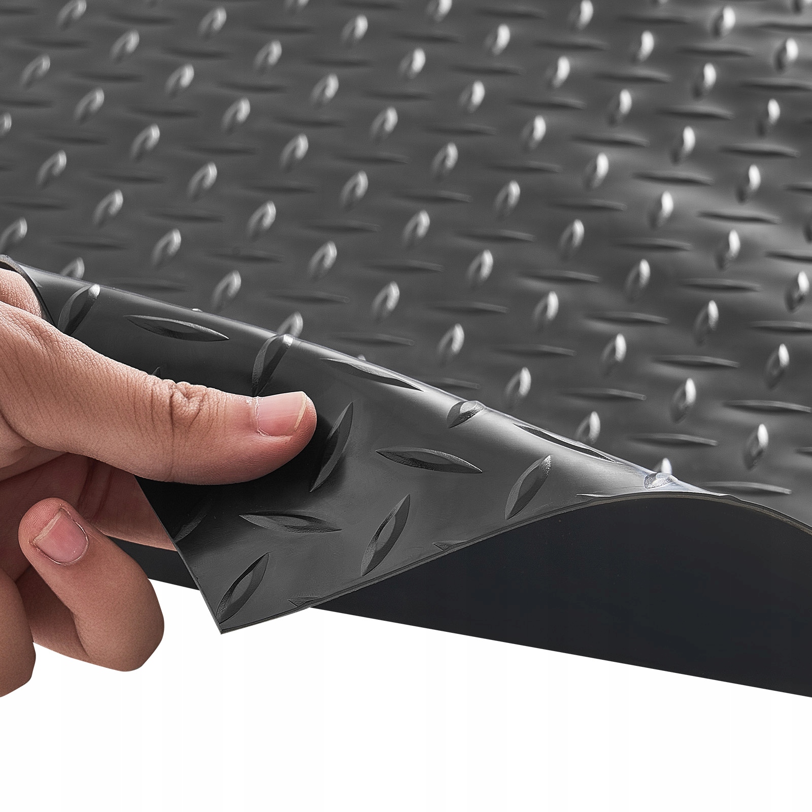 Стабільність і захист від ковзання: ромбоподібна шипована поверхня цього килимка розроблена для запобігання ковзанню та покращення зчеплення. Це забезпечує безпечну ходьбу та паркування навіть у вологих умовах. Використовуйте двосторонню клейку стрічку, що входить у комплект, щоб забезпечити міцне та довговічне зчеплення.