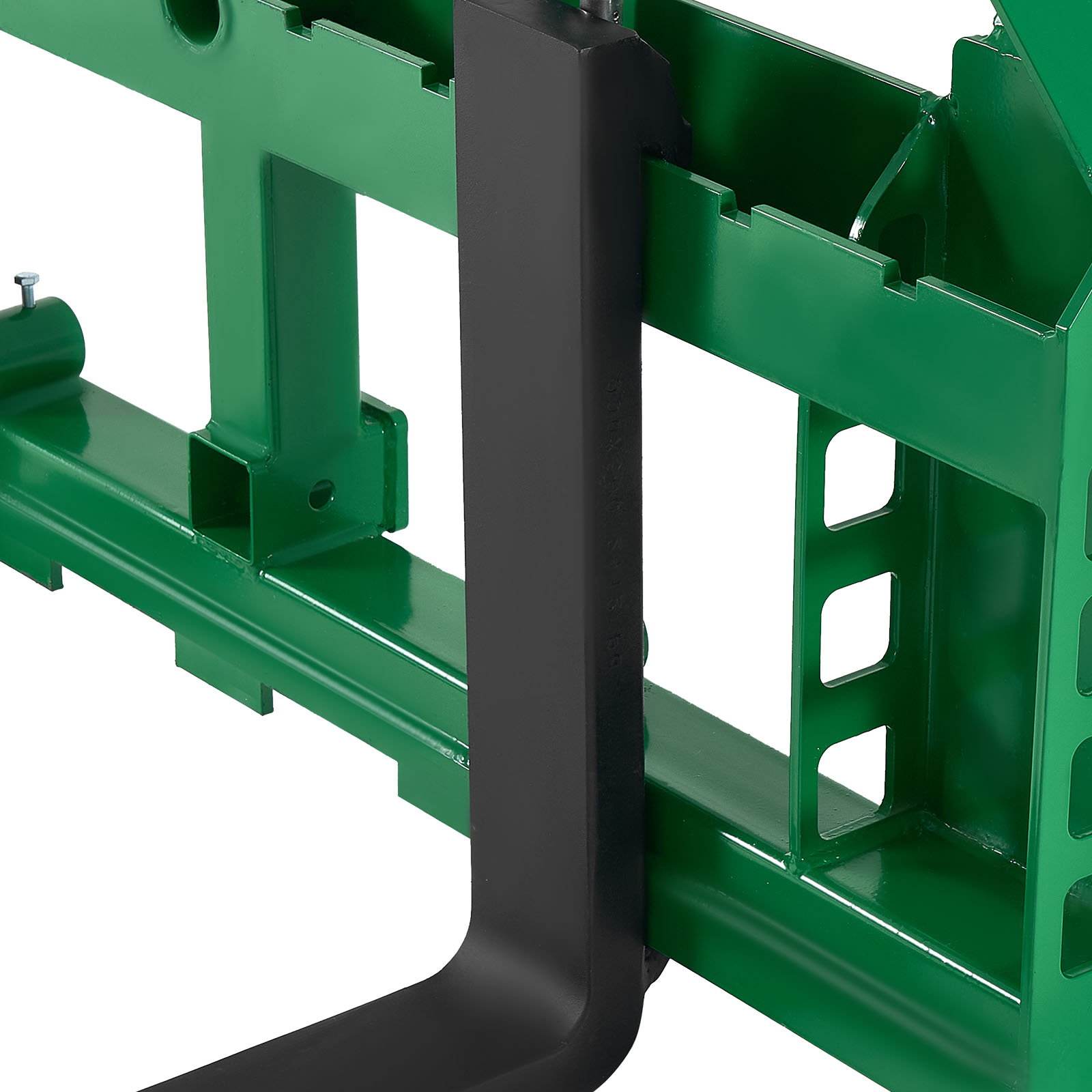 Ці вила для палет для міні-навантажувача важкої вантажопідйомності для тракторів John Deere мають вантажопідйомність 1814 кг і регульовану ширину. Завдяки піднесеним поручням для додаткової безпеки, ручці для швидкого монтування, інтерфейсу для сіна з 3 отворами та зчіпному пристрої діаметром 50,8 мм вони ідеально підходять для універсального, ефективного та безпечного транспортування.