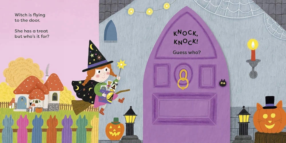Стук, стук! Вгадай хто? Дітям сподобається приєднатися до цієї пригоди на Хелловін, оскільки ці дружні персонажі розносять одне одному частування на Хелловін. Постукайте в двері й відчиніть їх, щоб дізнатися, кого освистали!