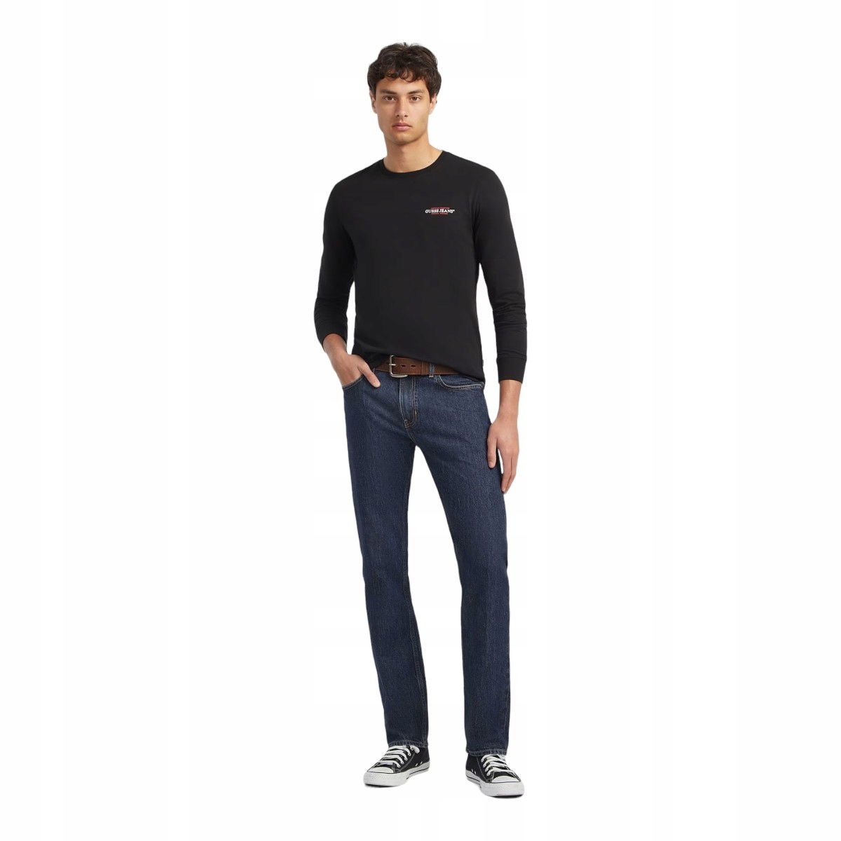 Вгадайте чоловіків довгий -слава t -сорочка gj ls cn slim American Black r.l