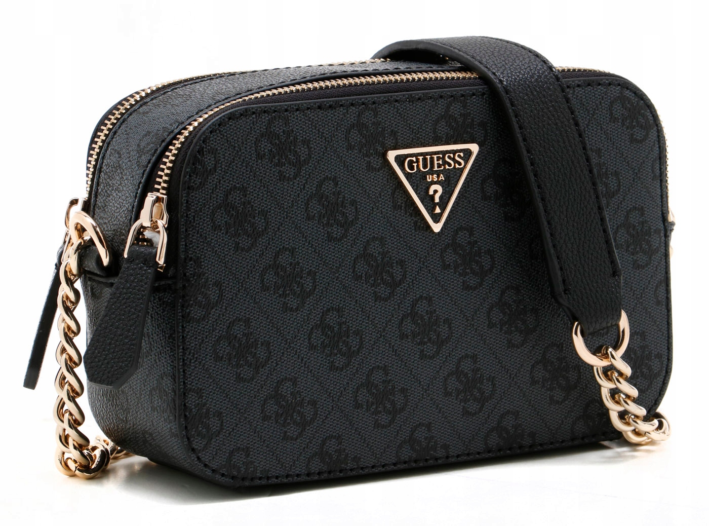 логотип: трикутник з написом "здогадки США" та знаку "?", всередині на написаннях "здогадки" всередині металевих табличок з гравірованим написом "Guess est.1981", на всіх mulitlogo