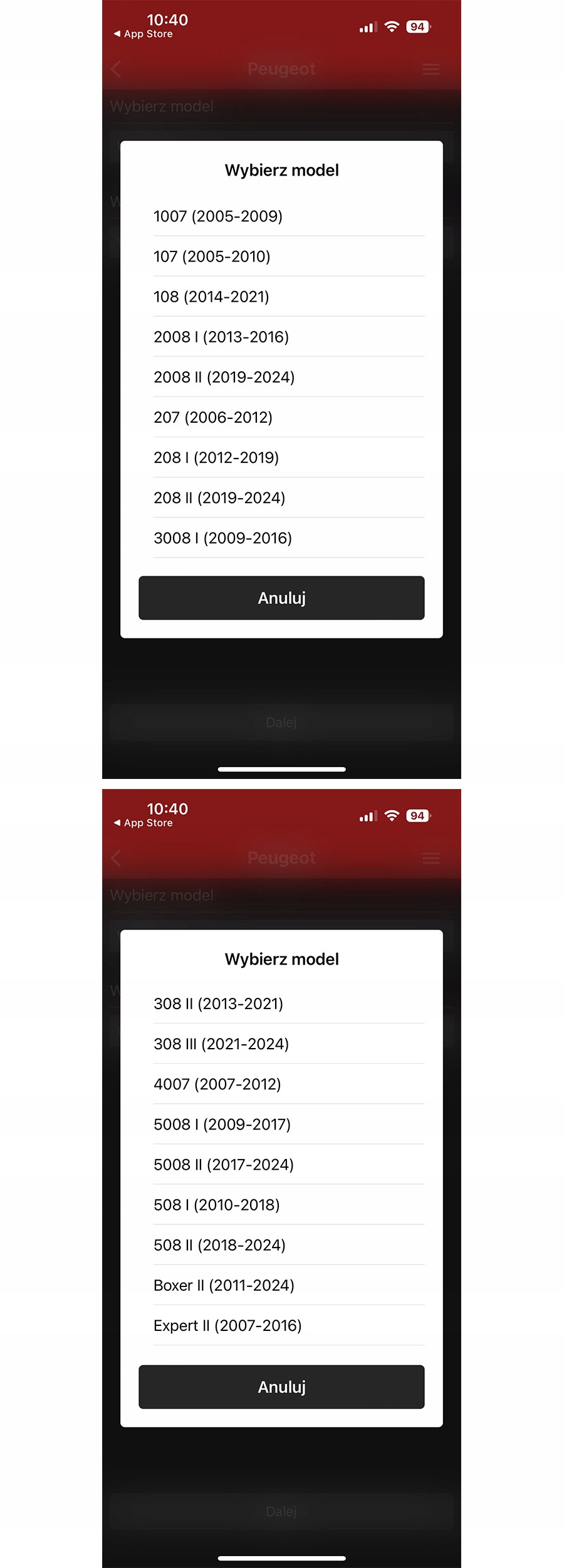 - Peugeot: 106, 107, 206, 207, 306, 307, 406, 407, 605, 607, 806, 807, 1007, Boxer , Expert, J5, Partner