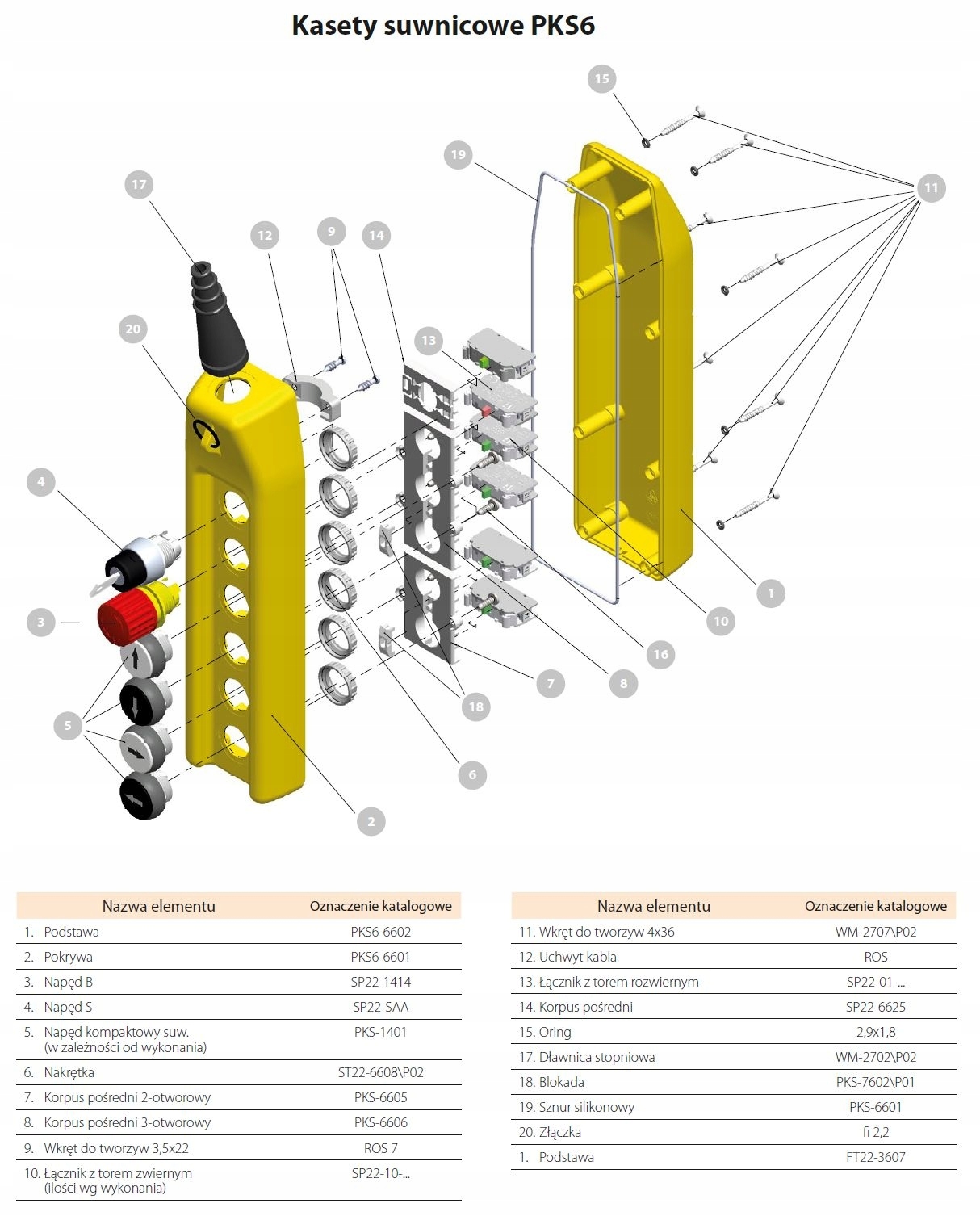 Кран-касета ПКС-6W01: 1 кнопка безпеки, 4 кнопки з 1 НО контактом.