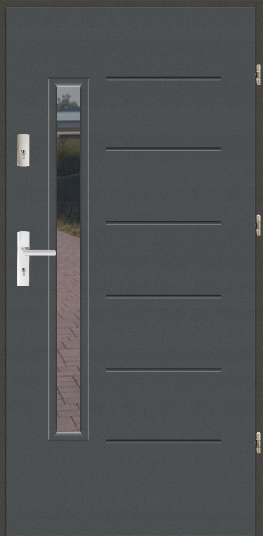 Двері оснащені двома 3-ригельними замками. За відкривання відповідають три регульовані петлі, закріплені протизламними болтами, а також є можливість змінювати щільність прилягання полотна до рами за допомогою регульованого замка.