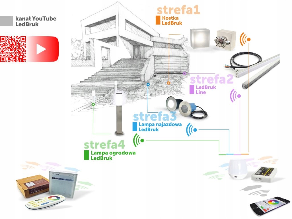 Для управління смартфонами необхідний додатковий пристрій "маршрутизатор концентратора" (доступний на наших аукціонах). Встановлення та конфігурація пристрою проста і не потребує спеціалістів. Ми пропонуємо вам переглянути інструктивні фільми, включені на веб -сайт youtube . Ви знайдете нас на каналі " ledbruk polska "
