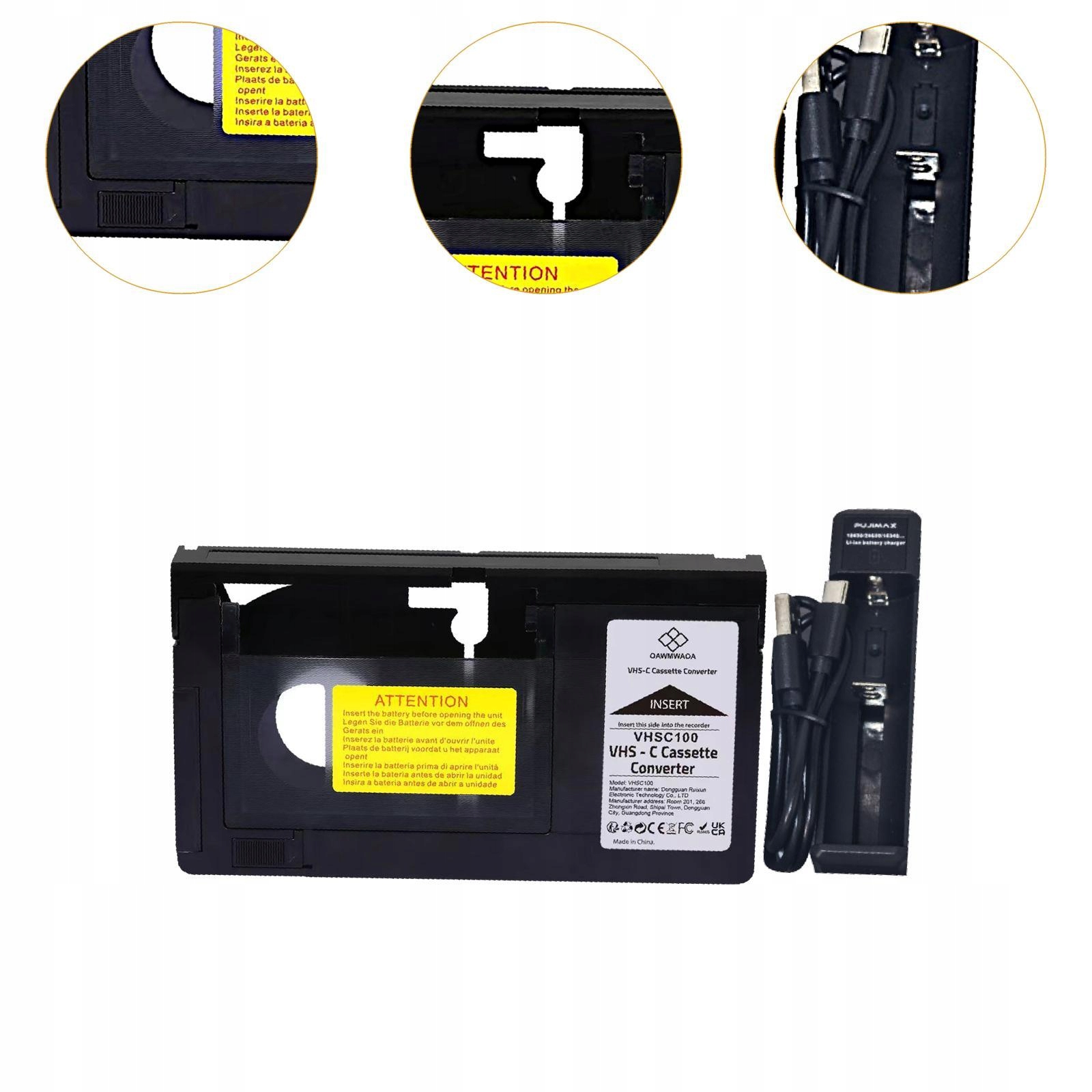 [Матеріал і розмір]: Зроблено з ABS з розмірами продукту 18.8cmx10.2cmx2.5cm/7.40inchx4.02inchx0.98in; Пакет містить 1 VHS -перетворювач та зарядне пристрої