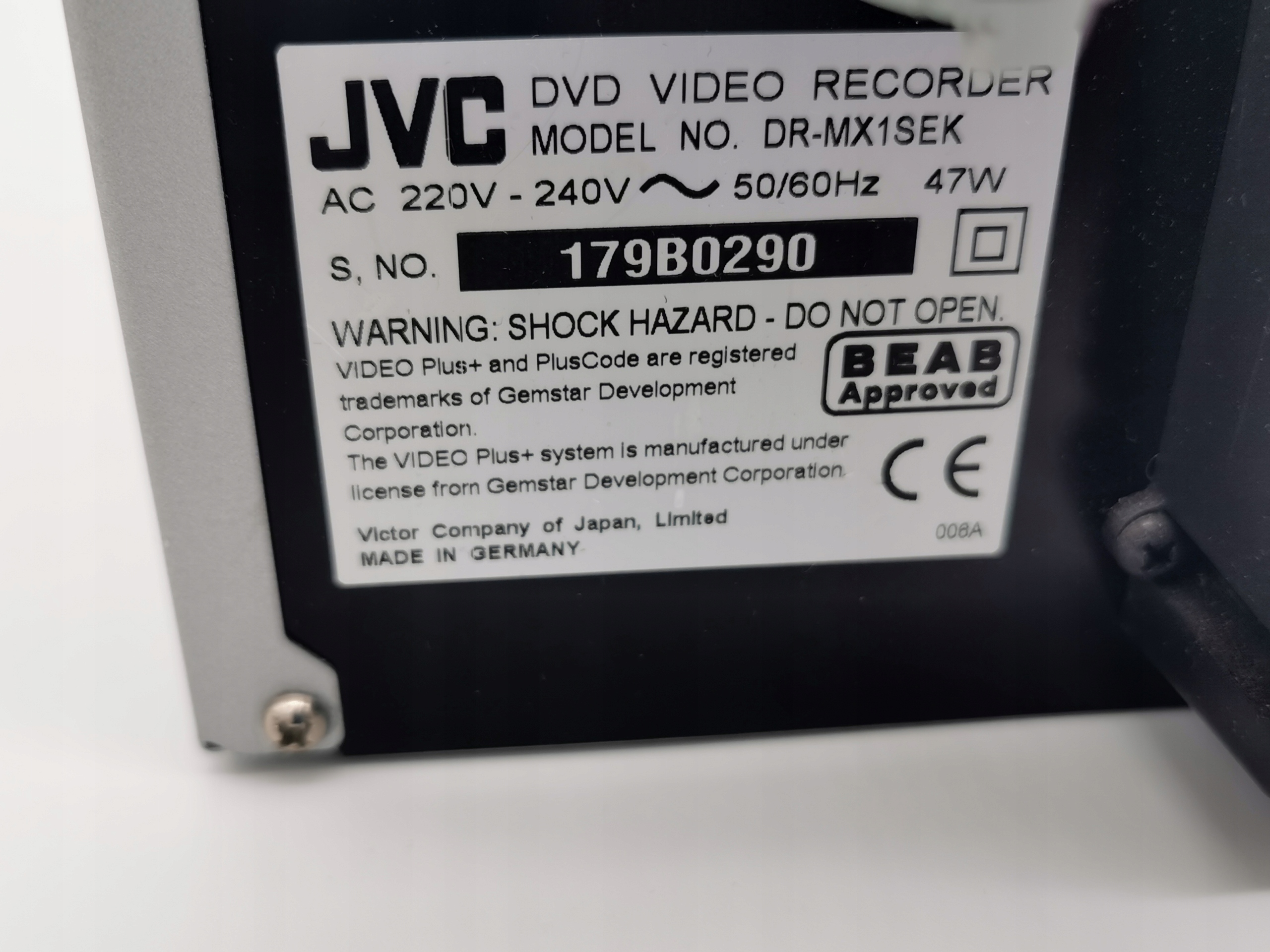 Продається багатофункціональний пристрій відеомагнітофон, плеєр і рекордер в одному японської компанії JVC модель DR-MX1SEK. Це дозволяє переглядати та копіювати записи між VHS та DVD носіями в обох напрямках. Він також має жорсткий диск на 160 ГБ, який можна використовувати як місце для зберігання записів або як посередник у їх копіюванні. Разом із пристроєм покупець отримує пульт дистанційного керування та повну інструкцію користувача англійською мовою, англійську вилку, потрібен адаптер UK-EU.
