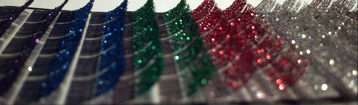 Блискучі вії наполовину вкриті блискітками, іншу половину просочують клеєм, а потім наносять на клієнта.