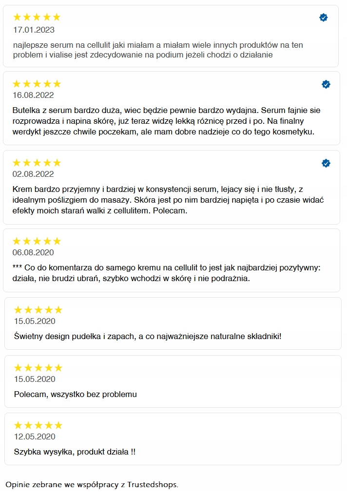Сироватка Vialise значно покращила мою впевненість у собі. Я використовую їх протягом місяця, і я бачу величезне покращення. Практично зник целюліт зі стегон і живота. - Kasia
