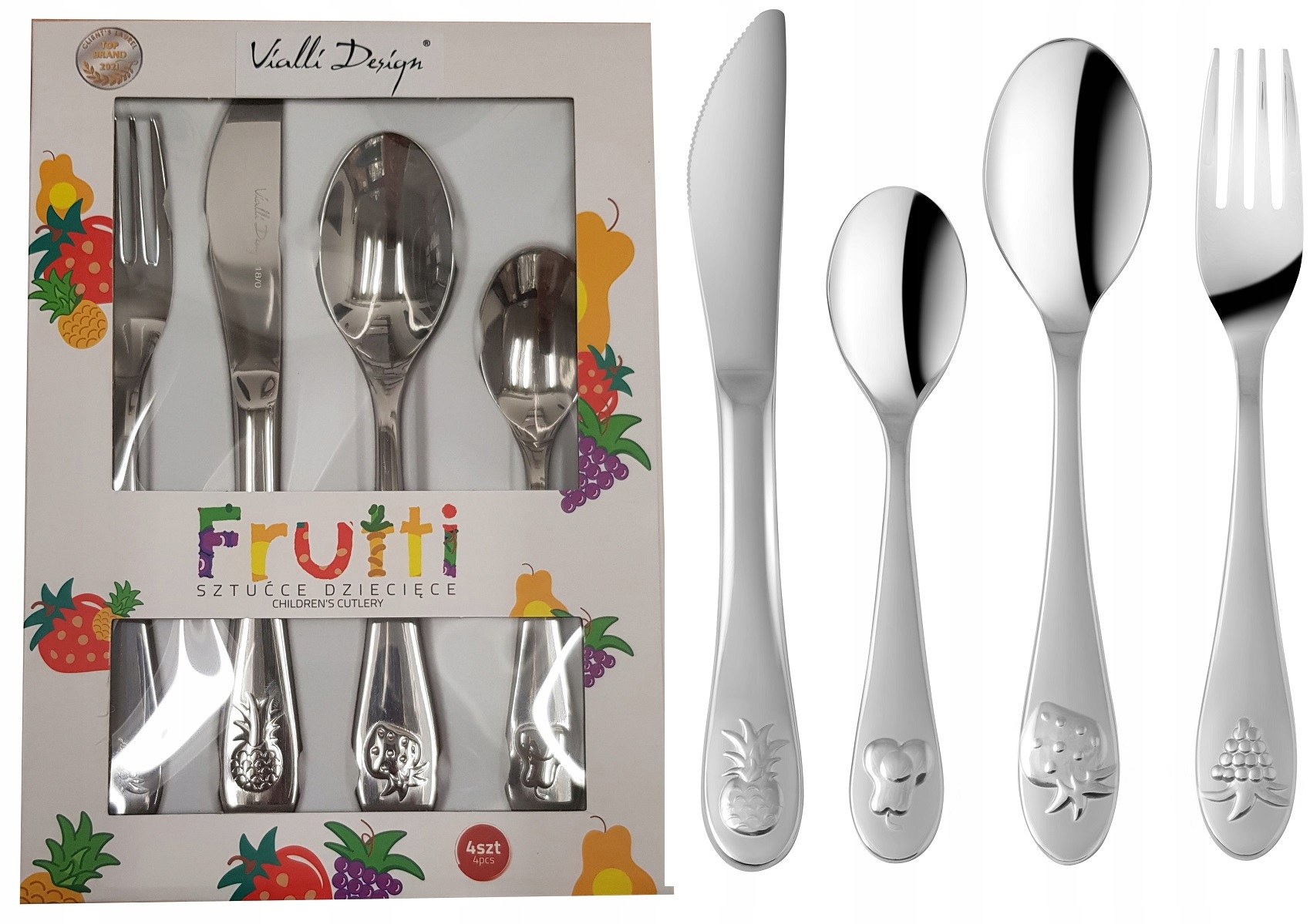 Просматривая «VIALLI DESIGN 4 ДИТЯЧИЙ СТОВИЙ ПРИБОР FRUTTI», вы можете быть уверены, что данный товар из каталога «Столовые приборы для детей» будет доставлен из Польши и проверен на целостность. В цене товара, указанной на сайте, учтена доставка из Польши. Внимание!!! Товары для Евросоюза, согласно законодательству стран Евросоюза, могут отличаться упаковкой или наполнением.