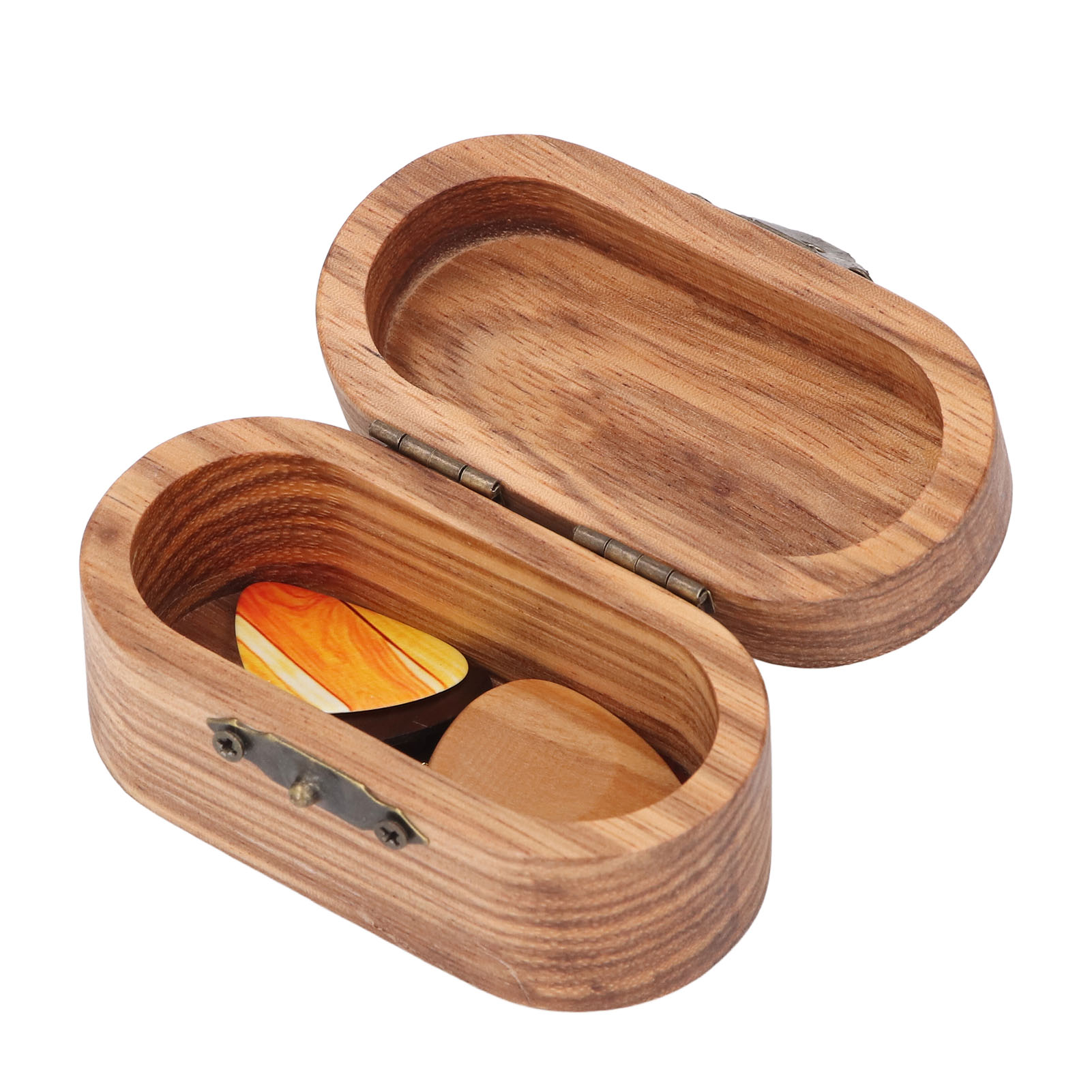 1. Дерев'яна коробка для вибору: Ця коробка для зберігання має ніжну і блискучу дерев’яну консистенцію, яка не може лише зберігати вибір гітари, але й служити вишуканим декором, красивою та практичною