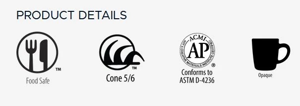 Вибір PC-25 Amaco Potter PC-25-це дуже стійка керамічна емаль тонкого, бірюзового кольору. У місцях, де шар емалі тонший, він може взяти зелені та бежеві відтінки. Більш товсте застосування емалі посилює бірюзовий колір, надаючи йому глибокий аквамариновий відтінок. Використання цієї емалі підкреслює текстуру кераміки, що робить її ідеальною для використання на стравах з рельєфами та іншими декоративними формами.
