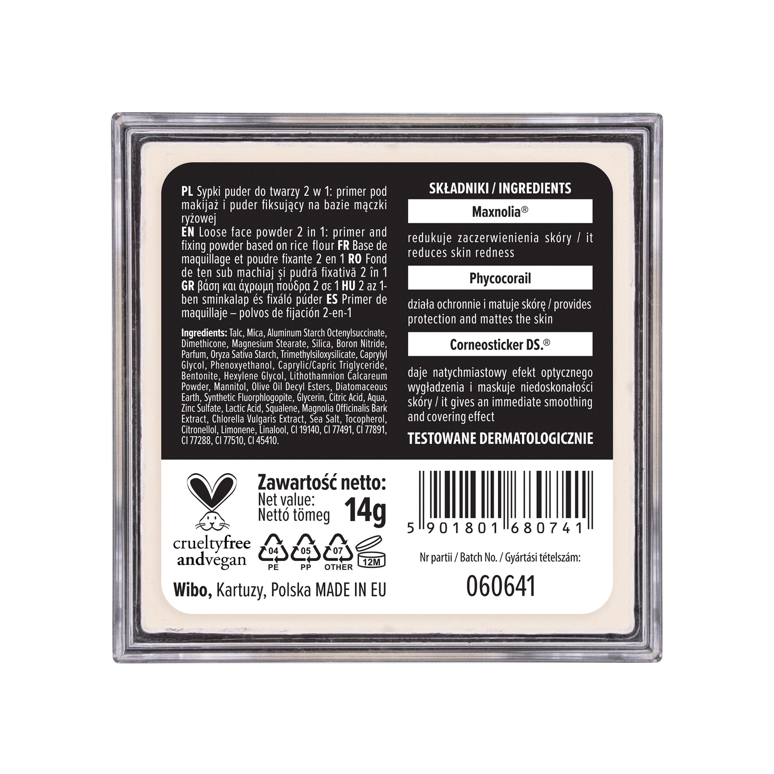 ефект? Шкіра стає сяючою, шовковистою на дотик і вільна від видимих недосконалостей. Завдяки ультрасне подрібненню порошок ідеально згладжує нерівність і оптично зменшує пори, при цьому поглинаючи зайвий шкір і запобігаючи сяючому протягом усього дня. Прозора, легка формула адаптується до кожного відтінку шкіри, не викликаючи ефекту "маски". Соло використовується делікатною матовою обробкою, а в дуеті з праймером або консилером розширює їх міцність на кілька годин.