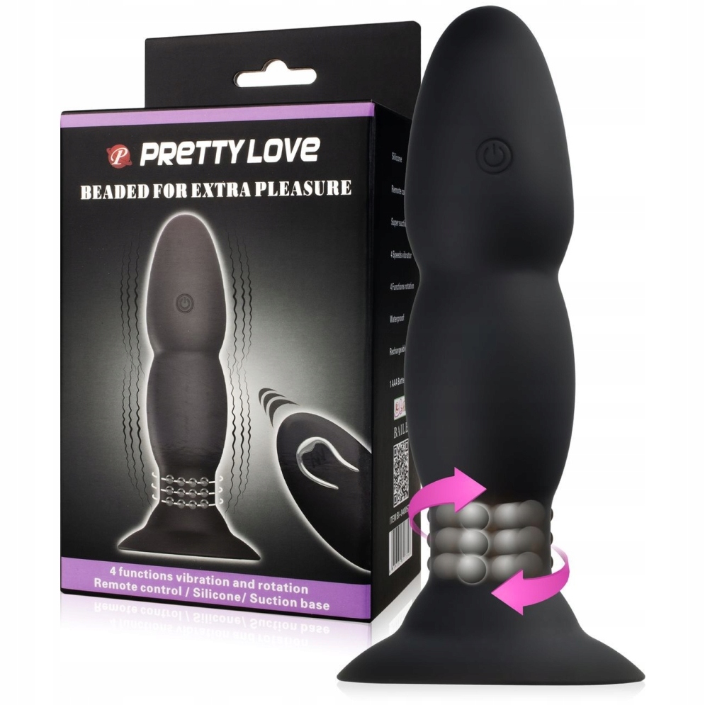 Унікальна вібраційна анальна пробка з металевими обертовими кульками, керована бездротовим пультом дистанційного керування або безпосередньо з гаджета. Він забезпечує пронизливий масаж по всій довжині заднього проходу, стимулює його інтенсивними вібраціями і захоплює унікальною обертальною стимуляцією. Куляста форма пробки гарантує задоволення від простого переміщення її у вузькому інтер'єрі. Бездротовий пульт дистанційного керування дає вашому партнеру можливість контролювати ваше задоволення. Силікон, з якого він виготовлений, також гарантує 100% безпеку та комфорт для вашого тіла.