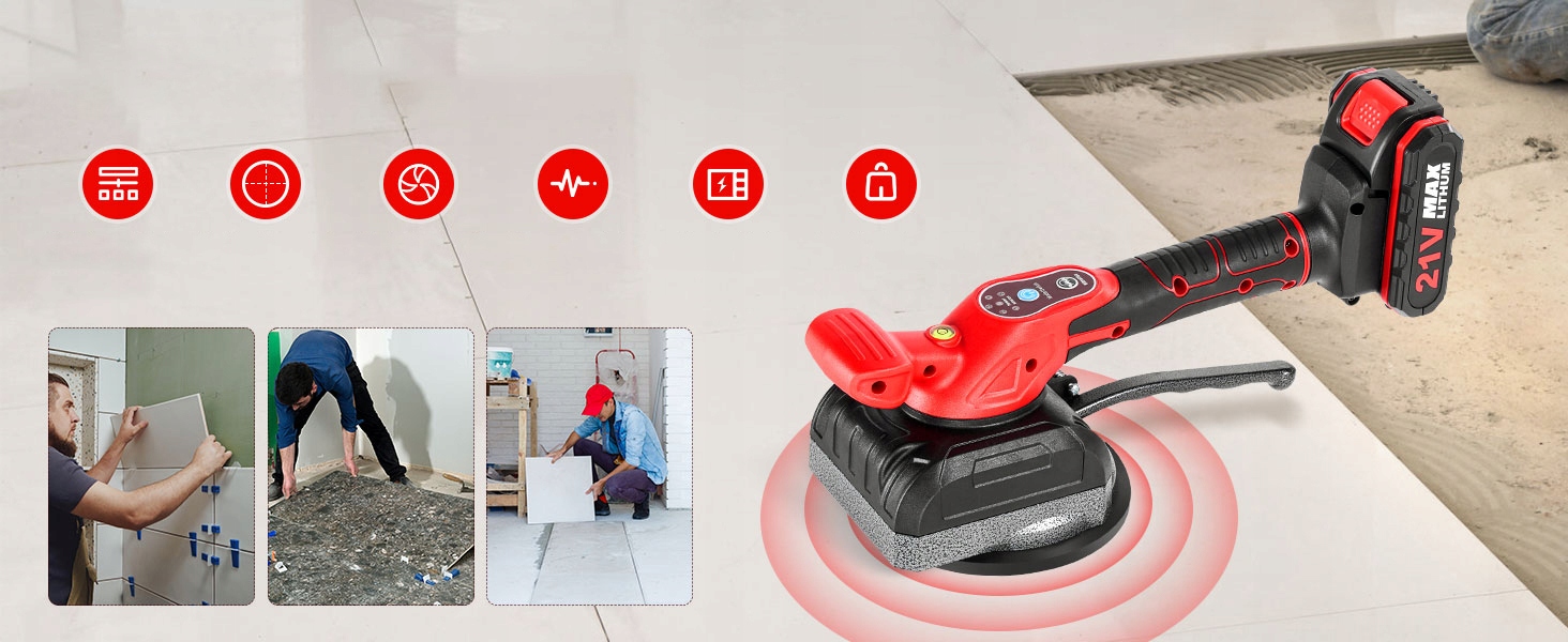 Цей вібратор для плитки є оснащений повністю автоматичною електричною присоскою та функцією автоматичної вібрації плитки.