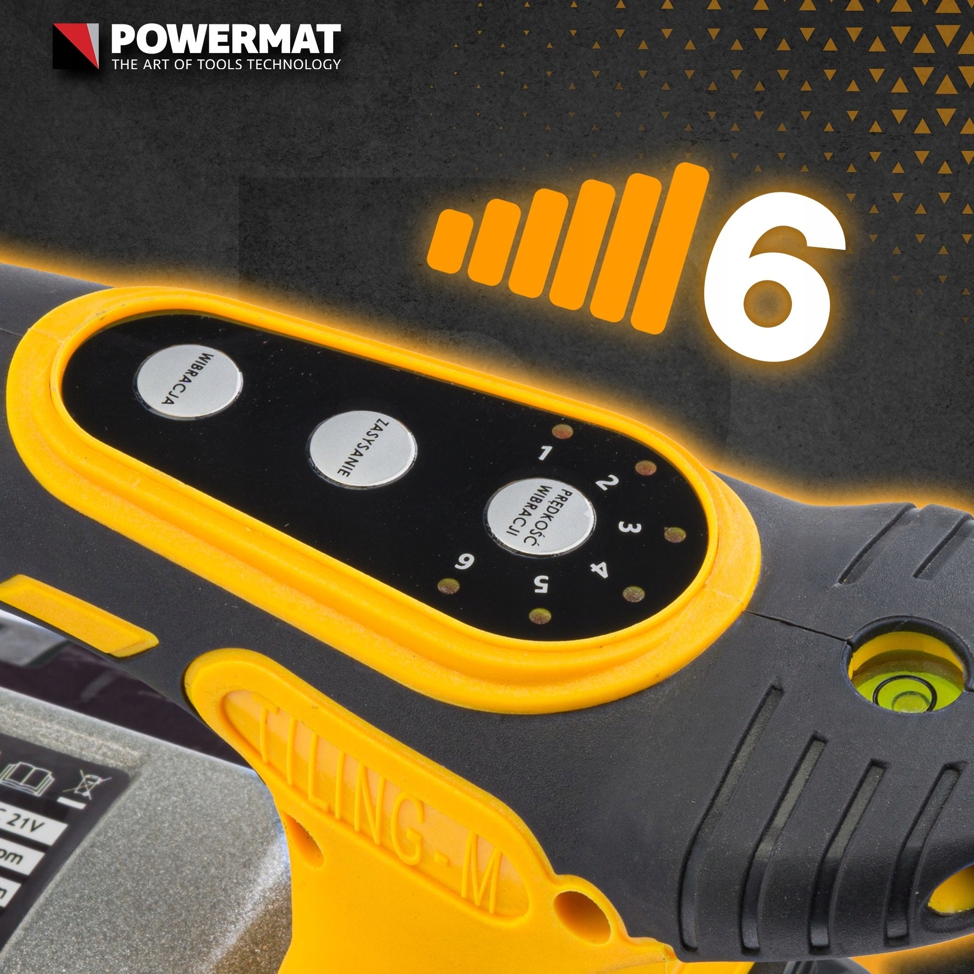 6-швидкісна функція регулювання швидкості дозволяє ще легше регулювати потужність пристрою. Міцна надійна ручка забезпечить повний контроль над вашою роботою. Вирівнювальна бульбашка полегшує правильне вирівнювання плитки, що укладається.