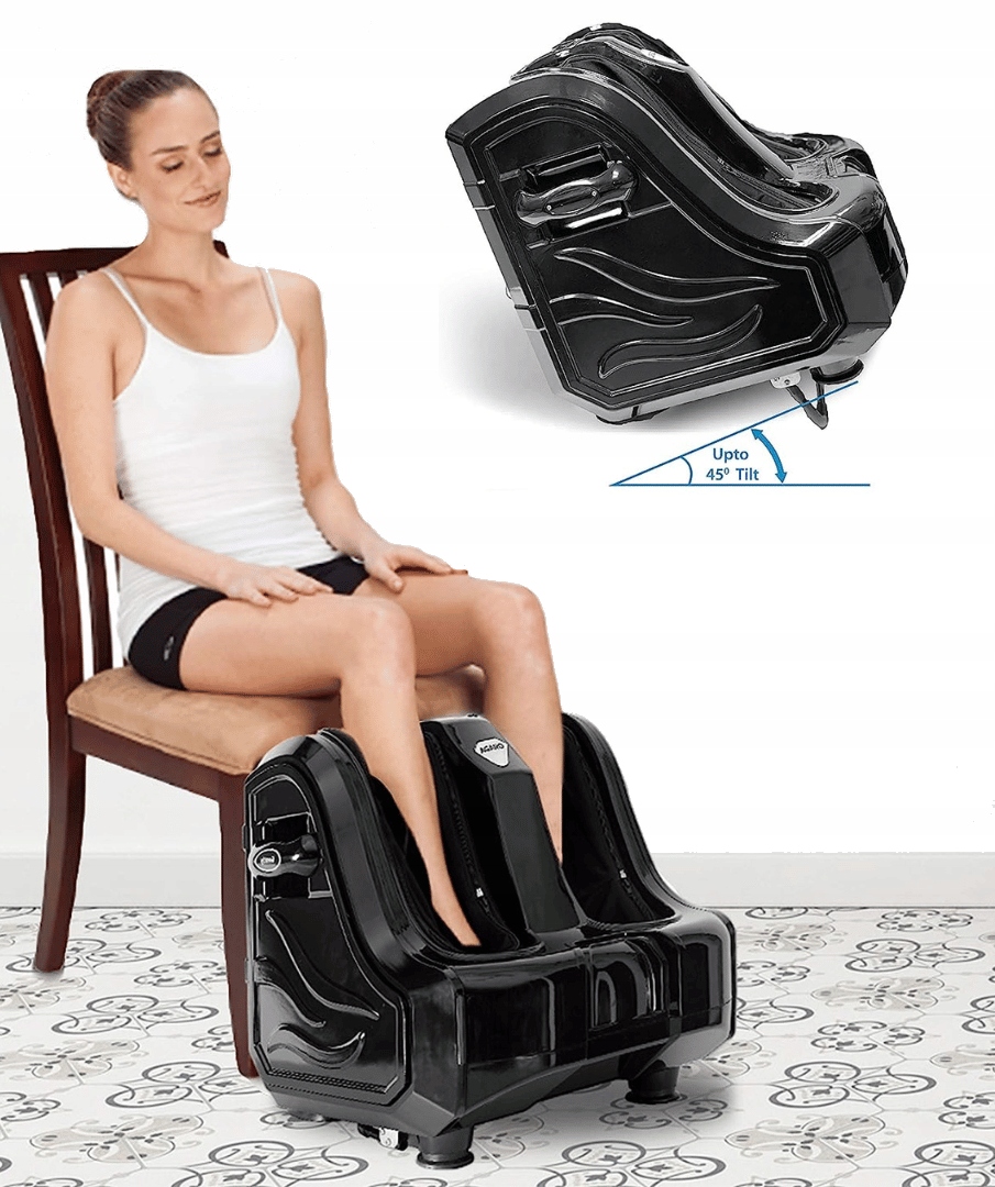 Знеболювальний масаж стоп. Вібраційний масаж і теплотерапія створюють потік у нижній частині тіла та знімають напругу навколо колін. Це забезпечує кращий кровообіг, швидке відновлення втомлених ніг і регенерацію м'язів після тривалого стояння або ходьби/інтенсивних вправ. Забезпечує глибокий проникаючий масаж стоп для оптимального розслаблення та негайного знеболення.