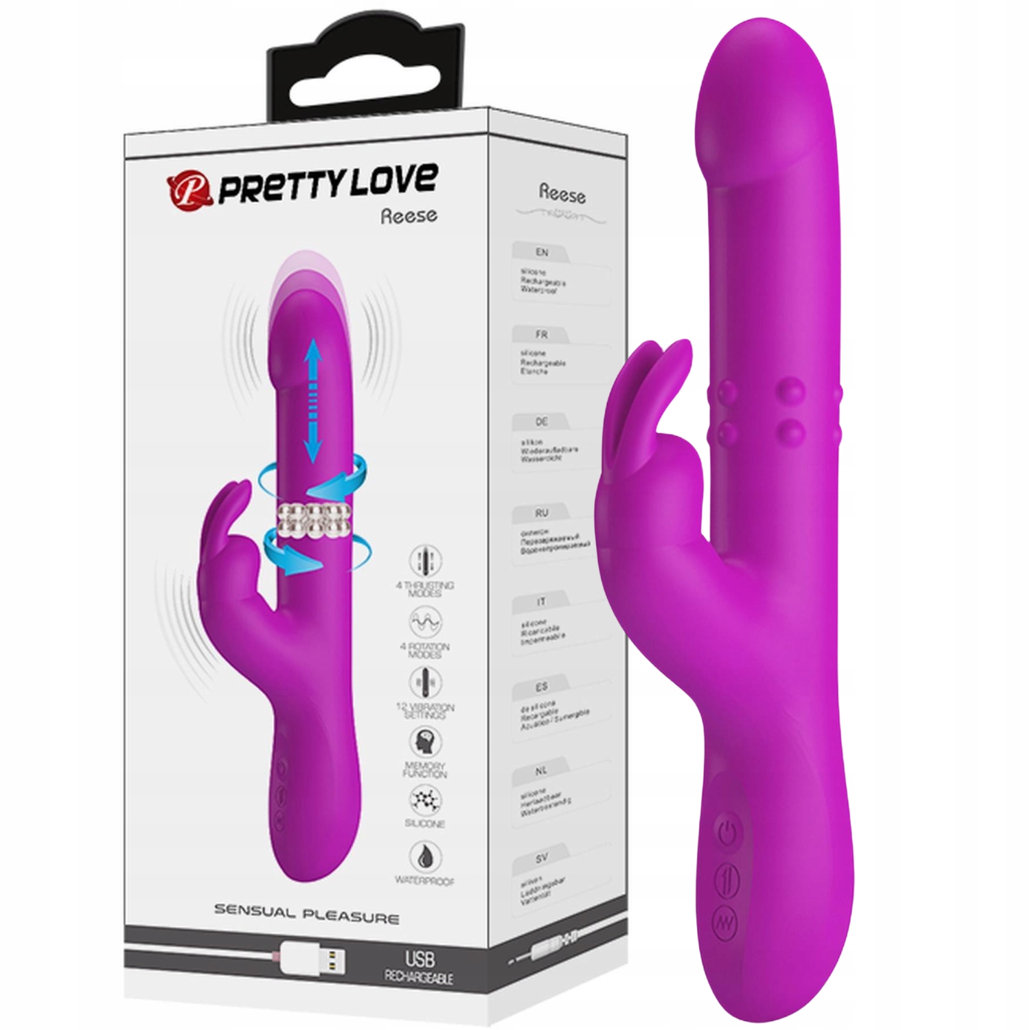 - Модель: PRETTY LOVE - Reese, 12 функцій вібрації 4 функції обертання 4 налаштування штовхання