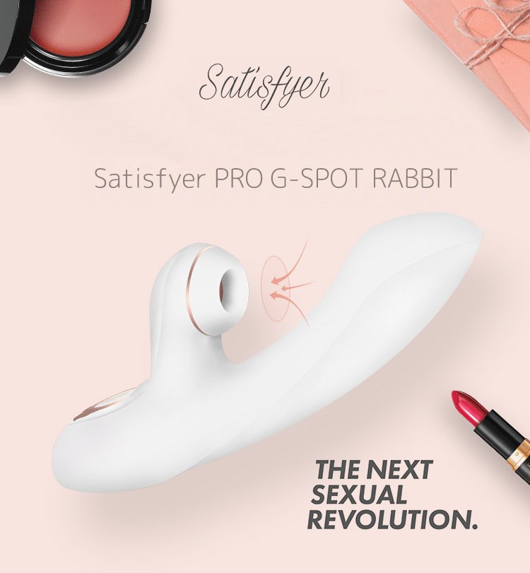 Satisfayer Pro G-Spot Rabbit - ультрасучасний вібратор із зайчиком, призначений для одночасного вагінального та кліторального масажу. Крім «традиційної» вібраційної вагінальної частини, він оснащений наконечником з унікальною технологією, що створює смоктальні хвилі для безконтактної стимуляції клітора.